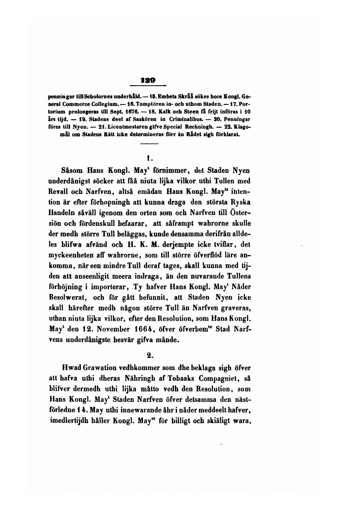 Hans kongl. Мауе Staden Narfven 6fver detsamma den nist-