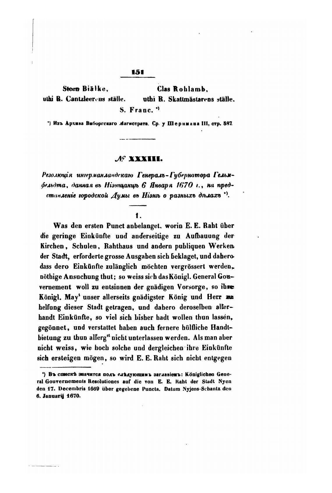 • ) Изъ Архии В•боргспго Магистрта. Ср. у Шерниава 111, стр. b87.