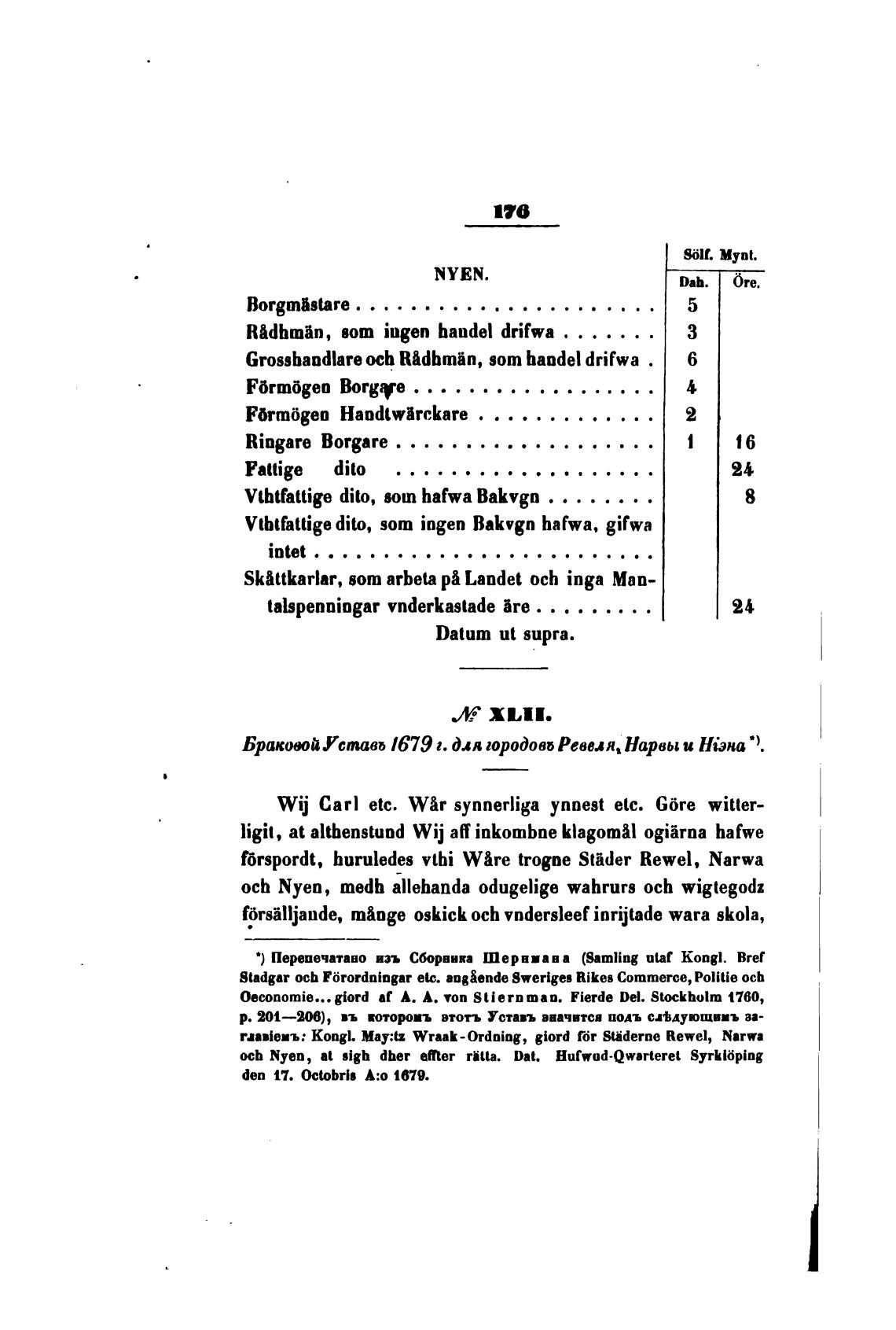 Брак(ЫйУставь 1679 г. Для городовь Ревмя. Нарвы и Н'эна •