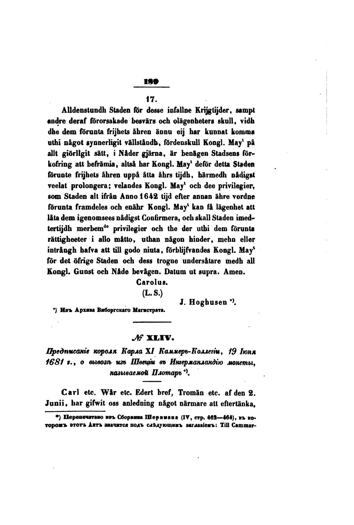Изъ Архива Ввборгскаго Магистрата.