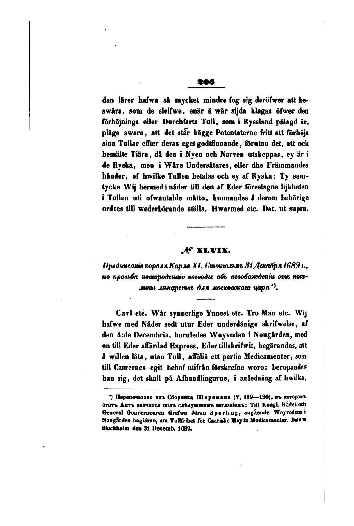 Иредпвсат.е короля Карла XI, Стокољо 31 Декафя 1689 г.,