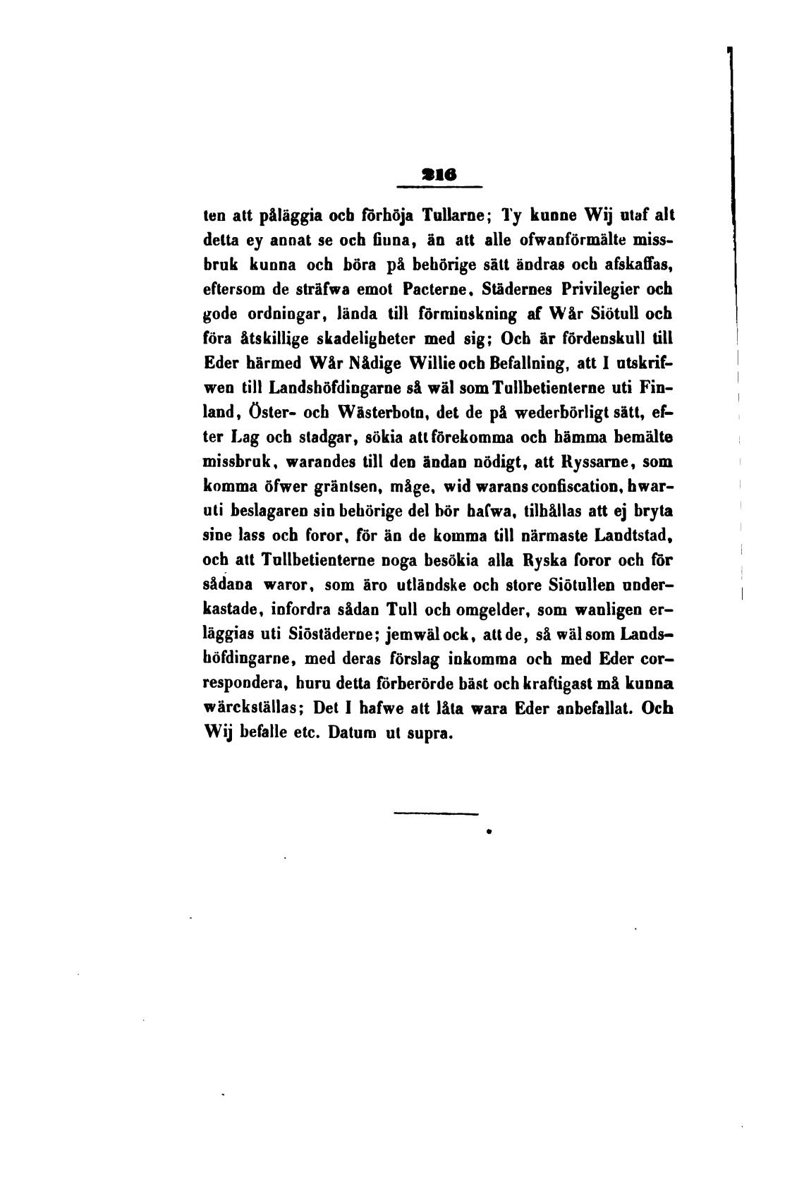 Wij befalle etc. Datum ut supra.