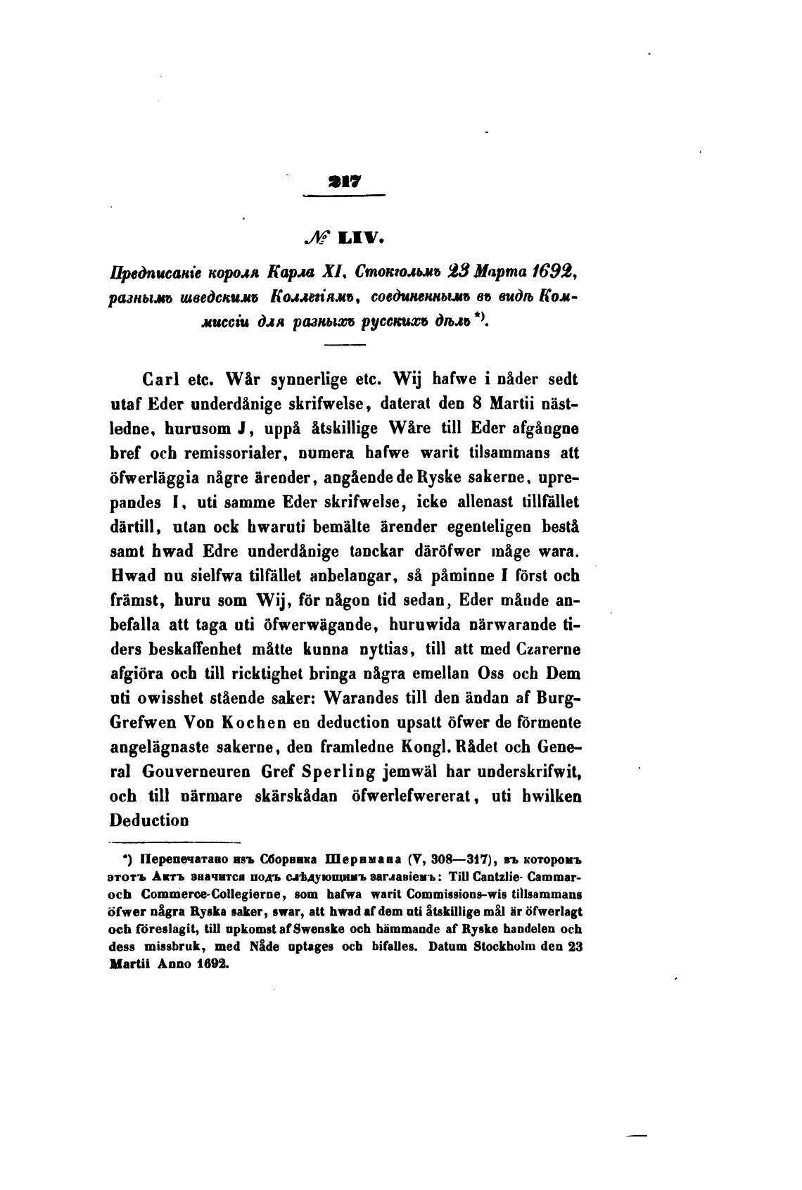 Ире&писак'е короля Кард XI. Стокгольм 23 Марта 1699,