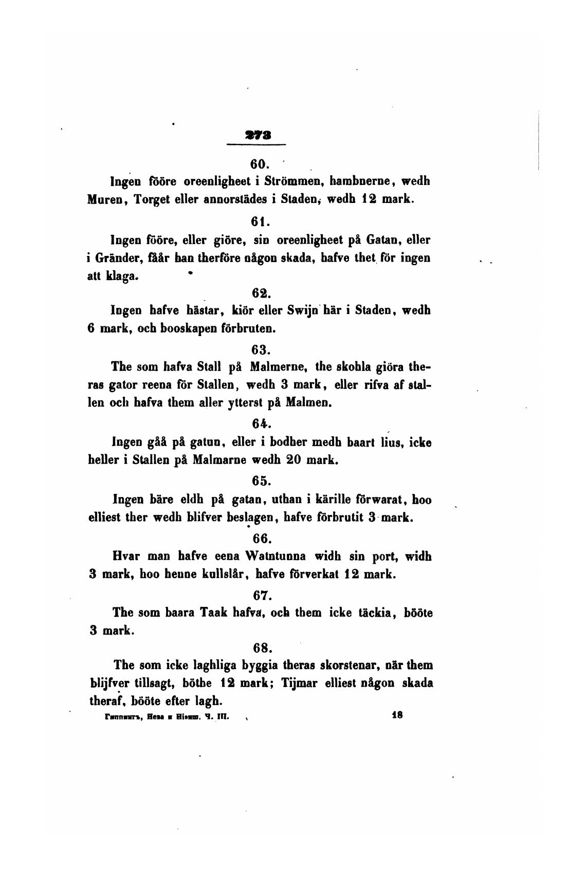 Iogen hafve histar, ki6r eller Swijn hir i Staden, wedh