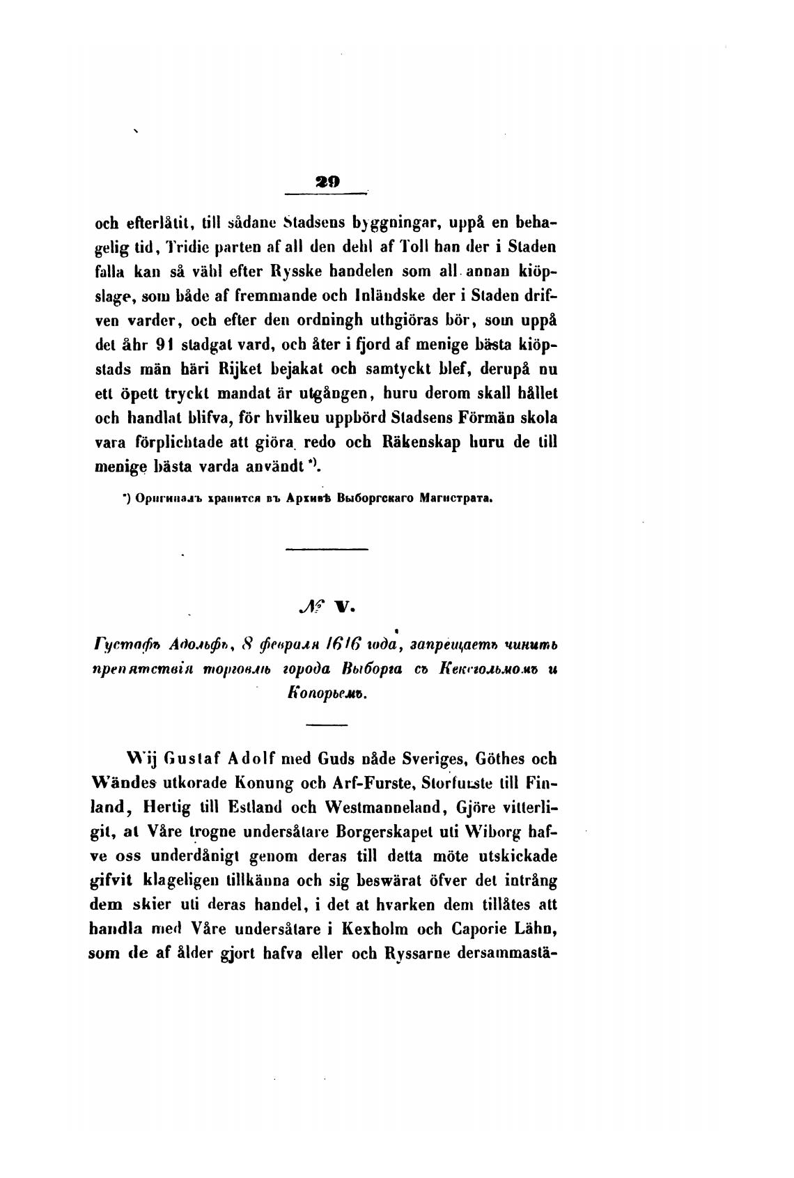 в) Оригиналь хранится въ Архив•Ь Выборгскаго Магистрата.