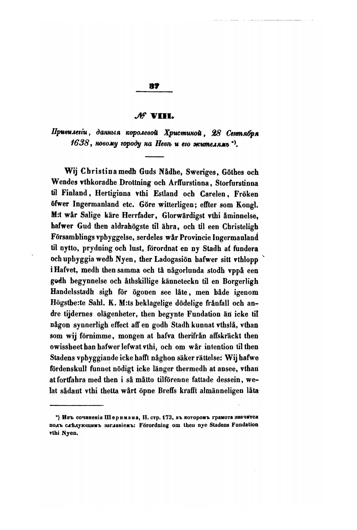 Изъ Шервмаиа, П. стр. 173, въ котокюиъ грамота звачИтся