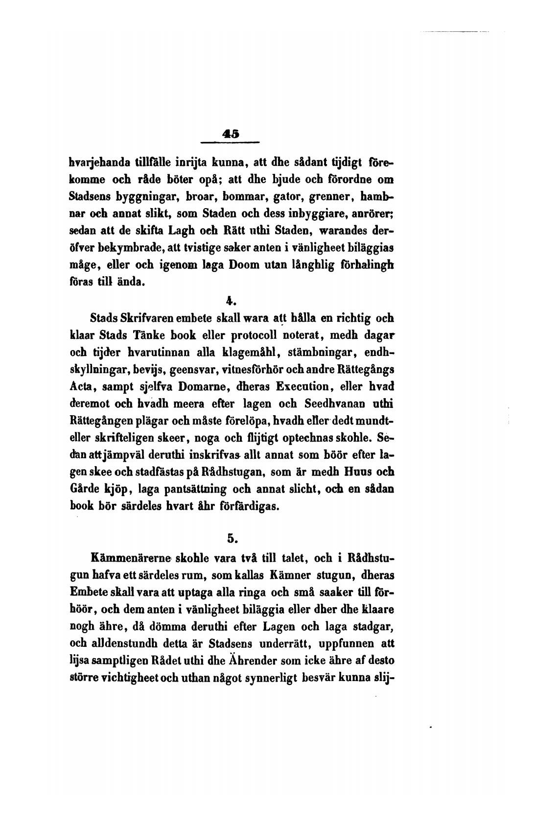 Stads Skrifvaren embete skall wara att h&lla еп richtig och