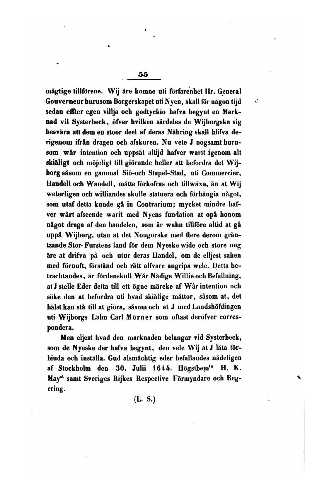 af Stockholm den 30. Julii 1644. H6gstbemte Н. К.