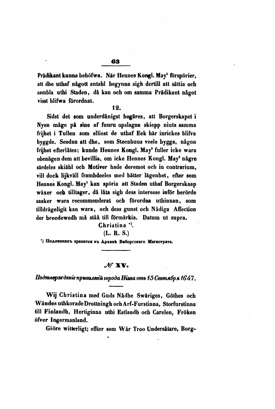 obenigen dem att bevillia, от icke Hennes kongl. Mayt nigre