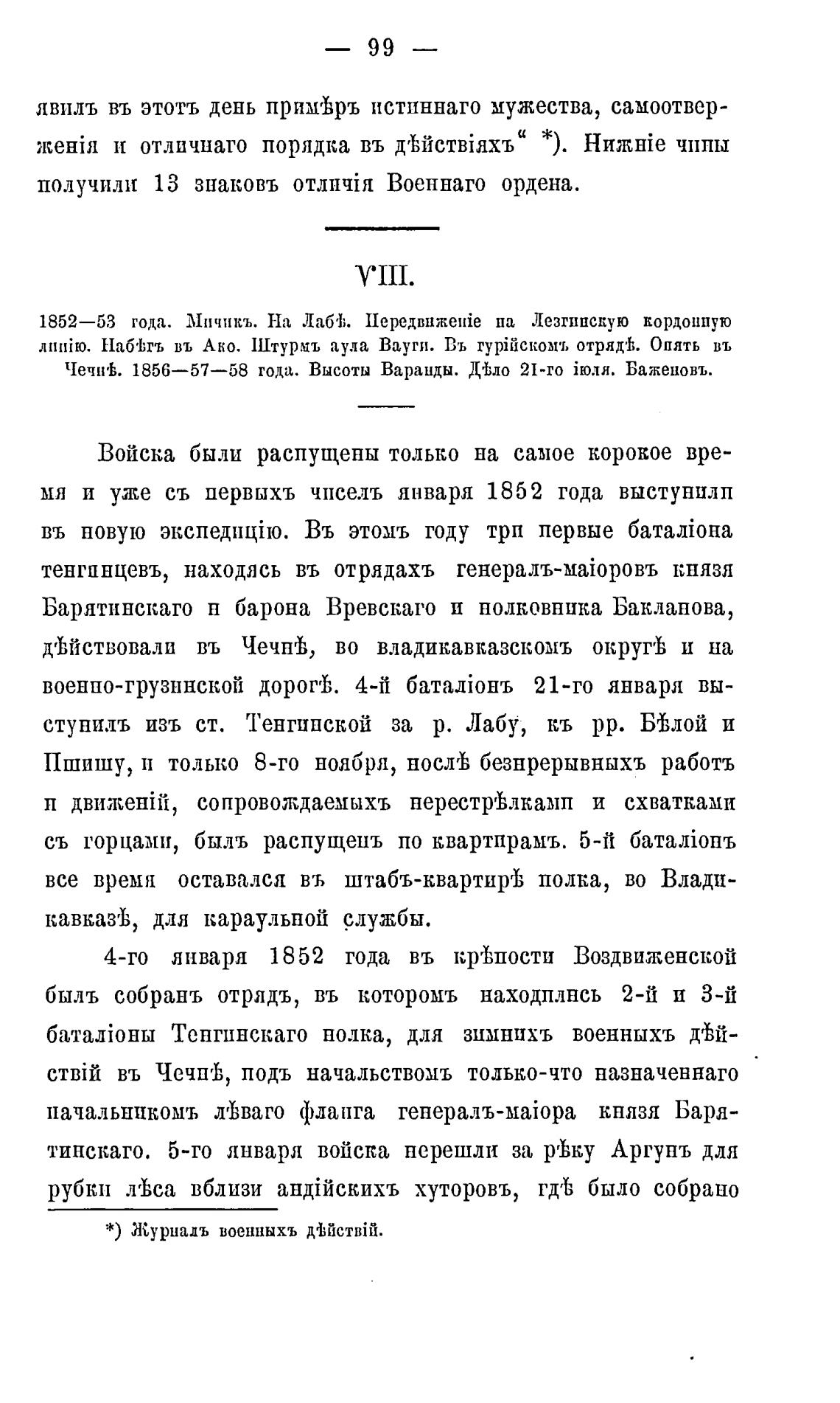 1852—53 года. Мичикъ. На Лаб'1;. Передвнже!йе па Лезгинскую кордонную