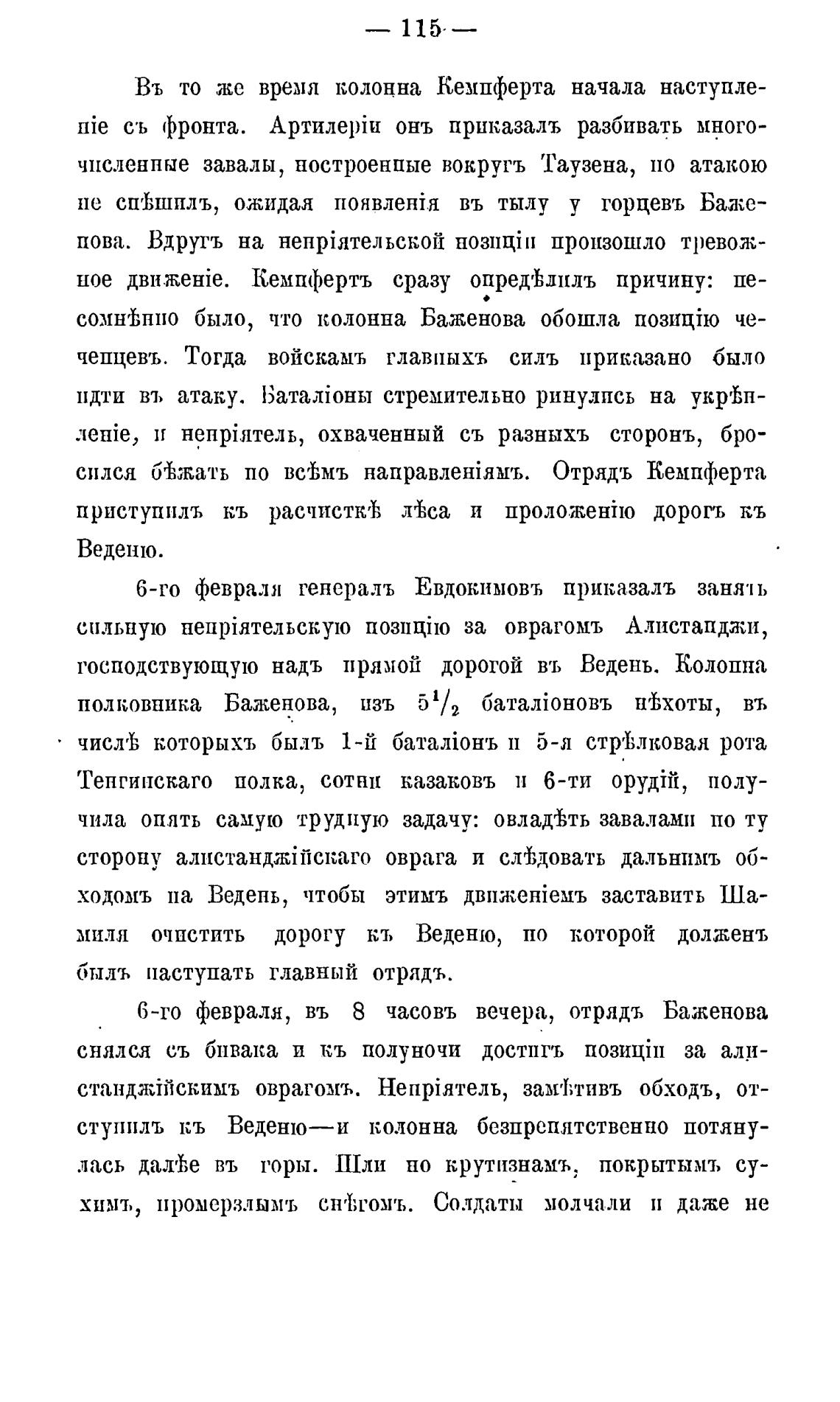 6-го февраля, въ 8 часовъ вечера, отрядъ Баженова