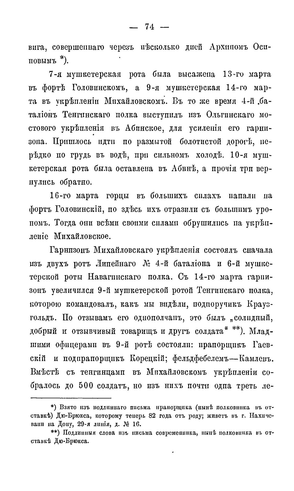въ фортђ Головинскомъ, а 9-я мушкетерская 14-го мар-