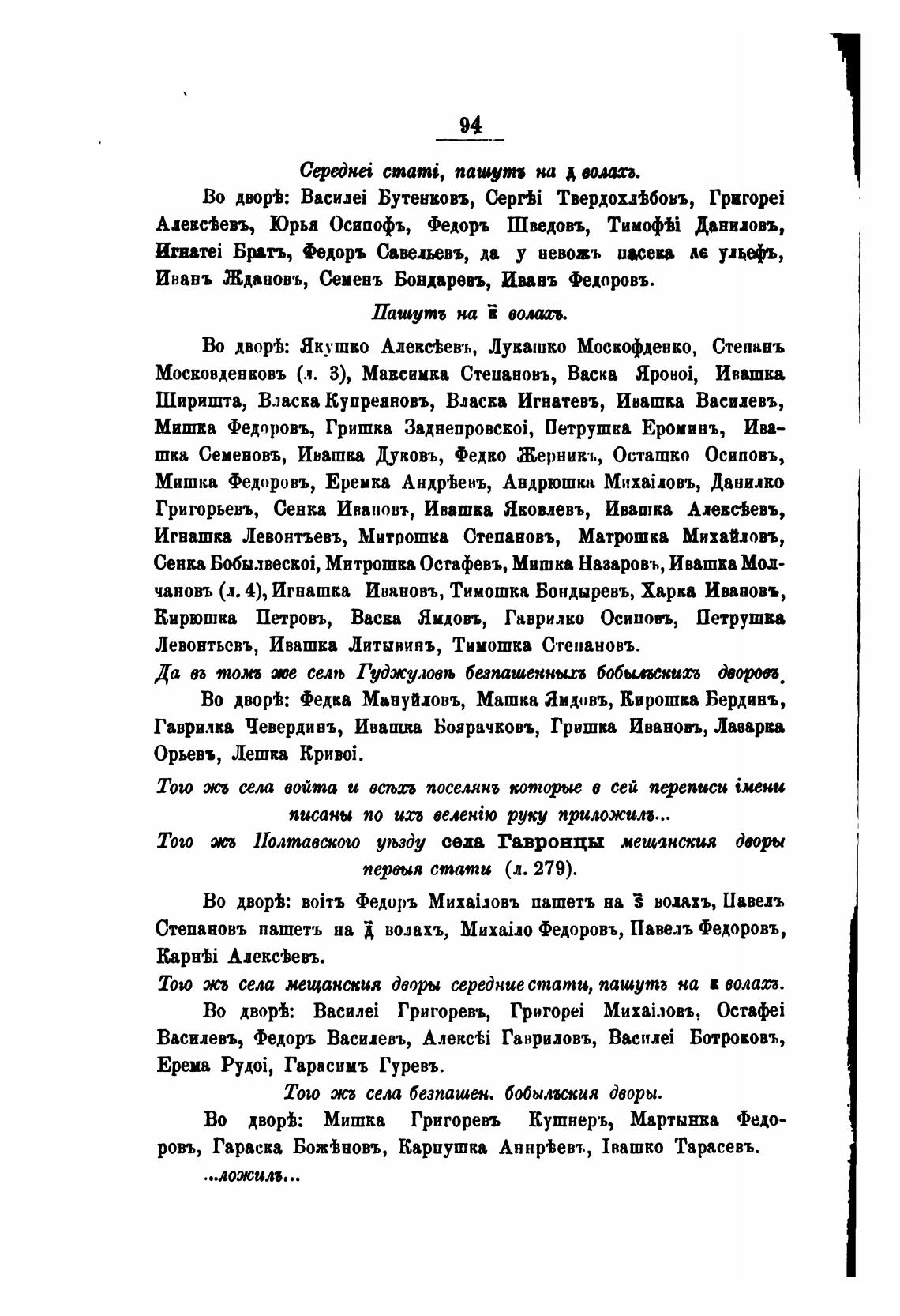 ровъ, Гараси Божђновъ, Карпушка 1вашко Тарасевъ.
