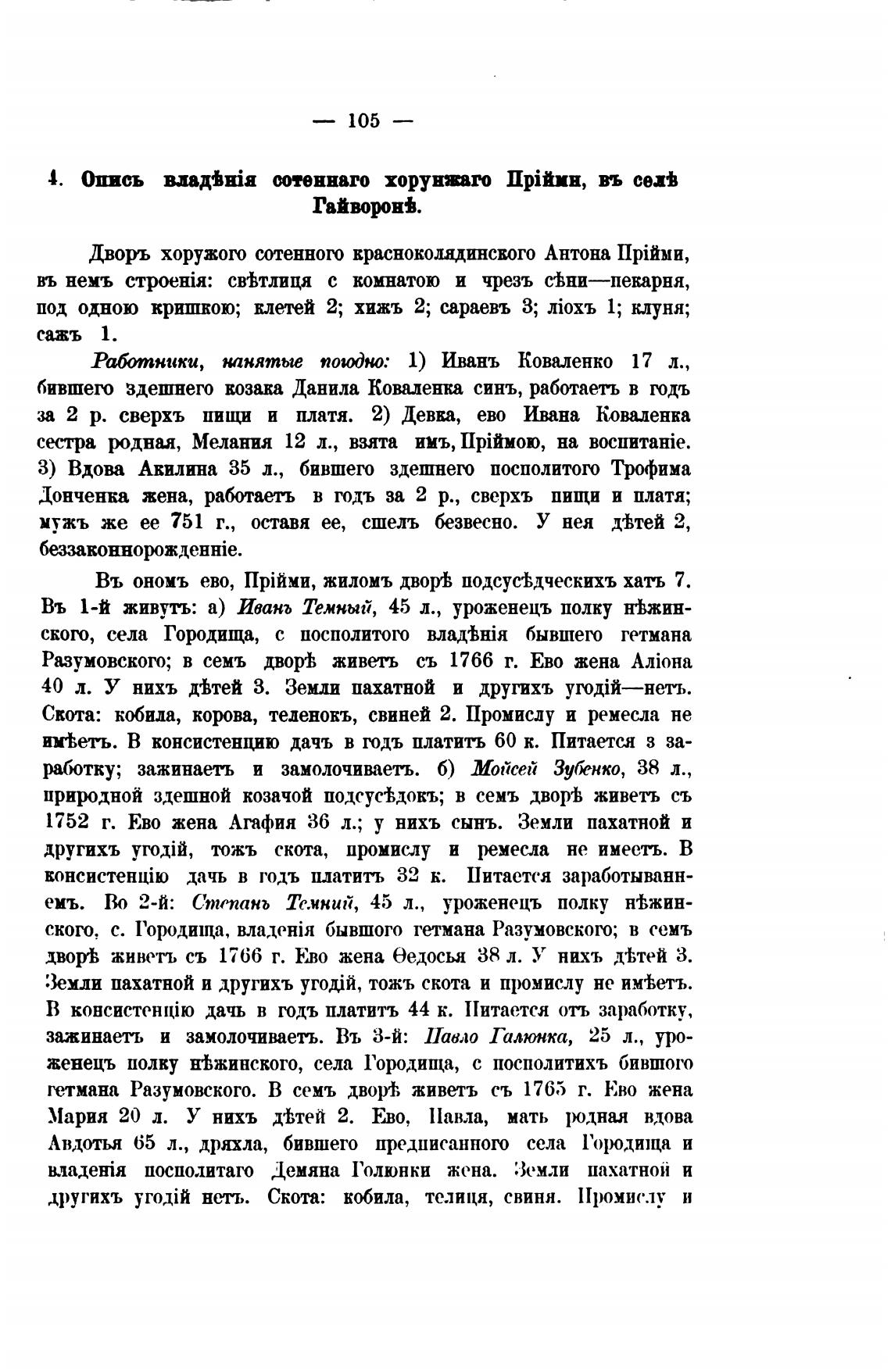 Въ 1-й живуть: а) Ивань Темный, 45 л., уроженецъ полку нгьжин-