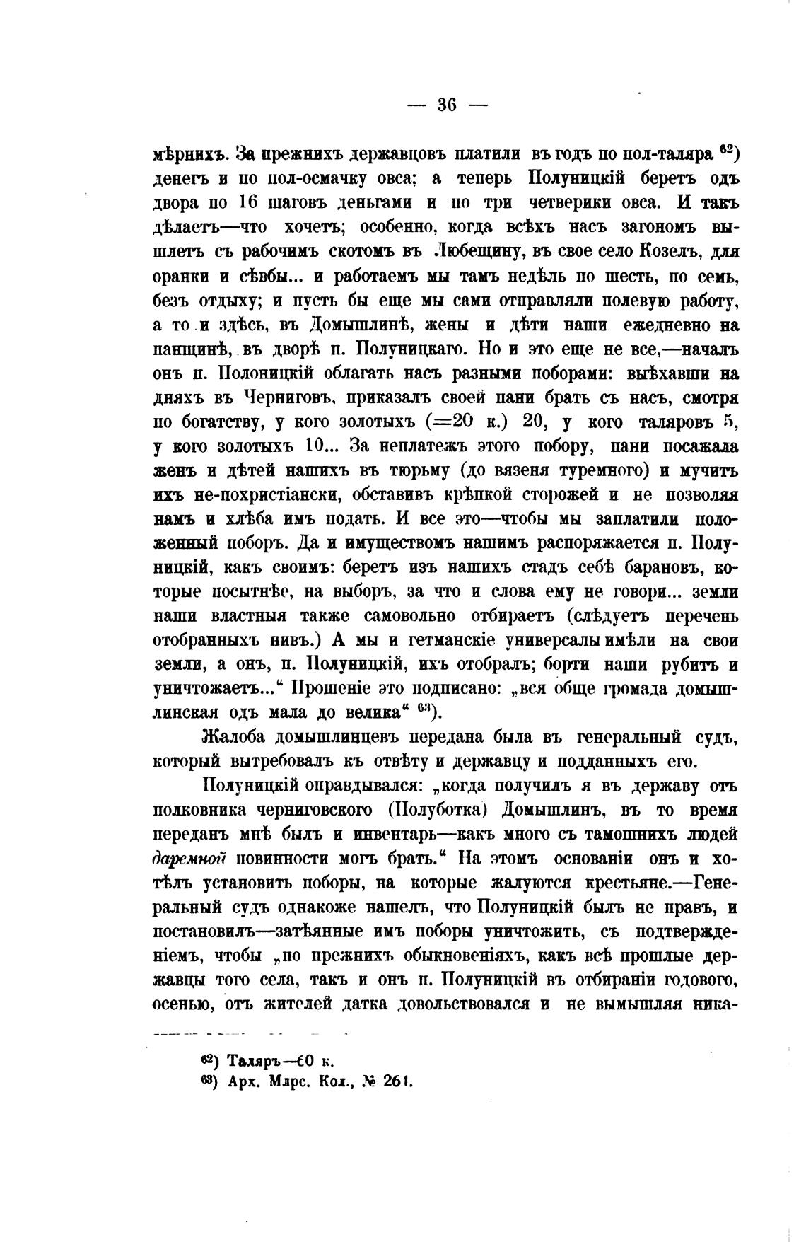 м±рнихъ. прежнихъ державцовъ платили въ годъ по пол-таляра 62)