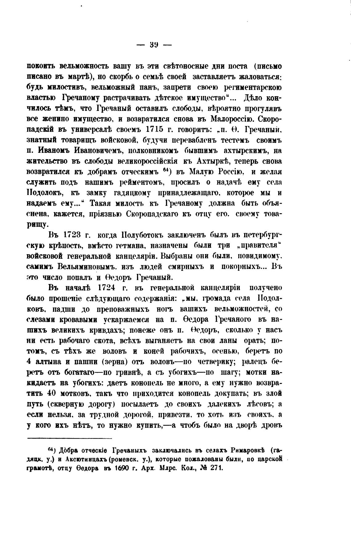 64) ДЬбра 0Tqeckie Гречаныхъ заключались въ селахъ Римаровк•Ь (га-