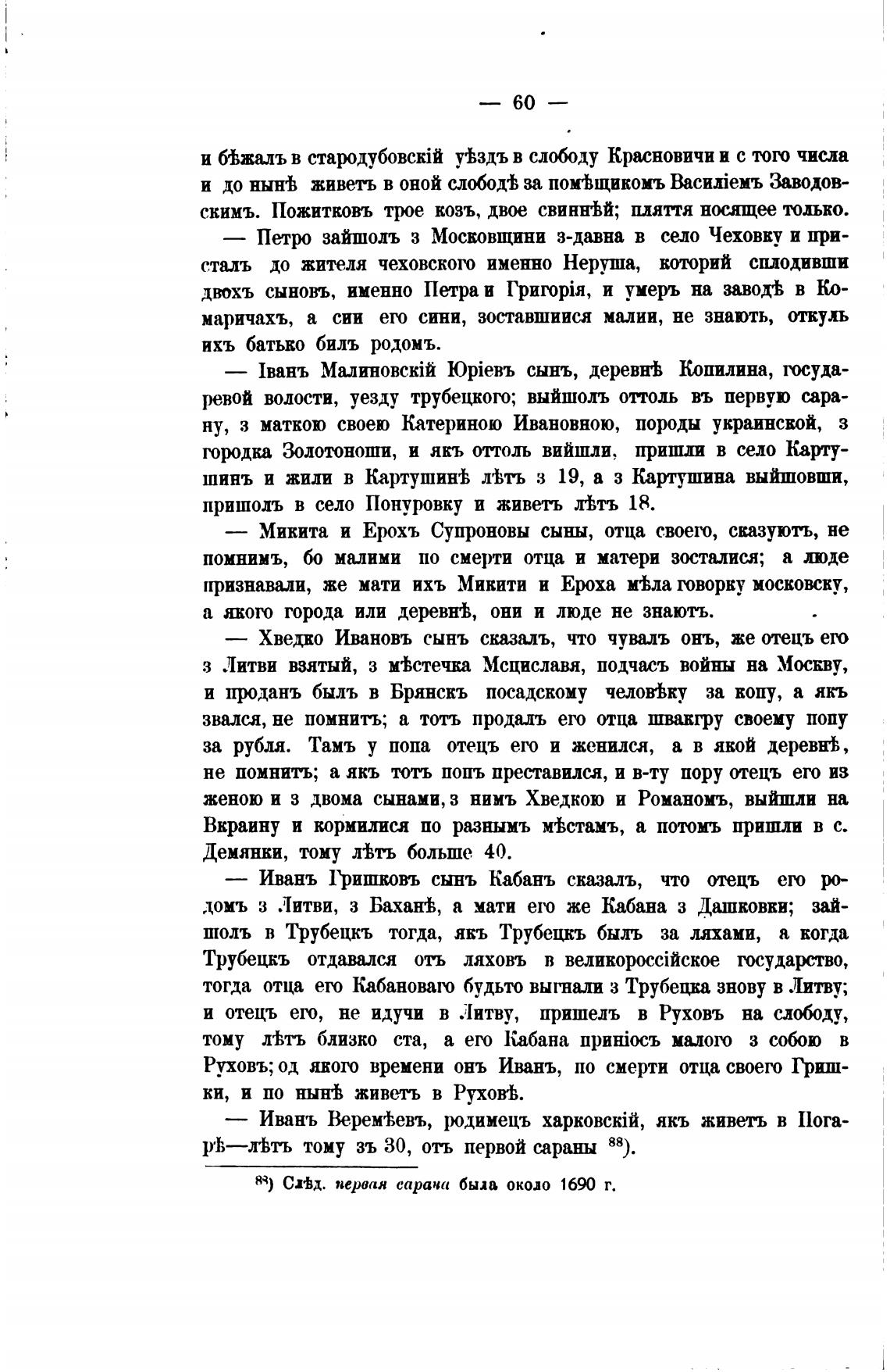 РЬ—лЬть тому зъ 30, отъ первой сараны 88).
