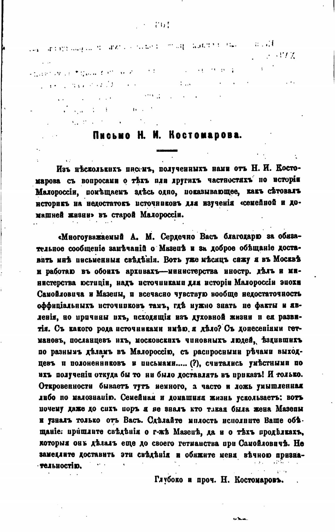 Письмо Н. И. Костомарова.