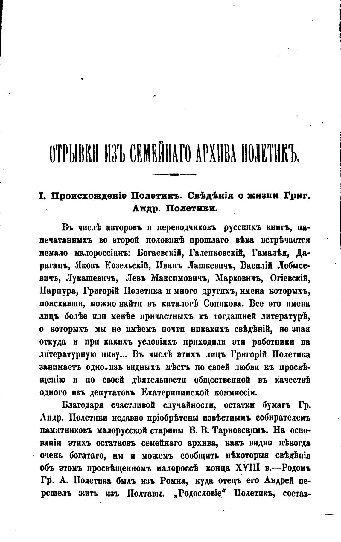 Гр. А. Полетика быль ивъ Ромна, куда отецъ его Андрей пе-