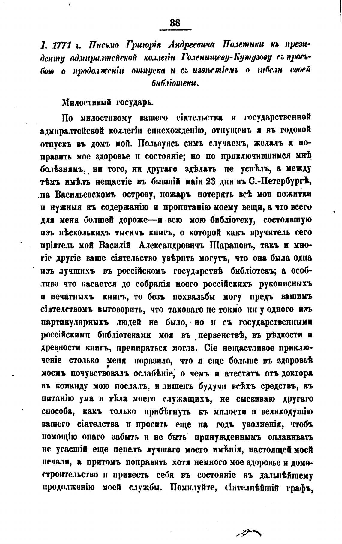 1. 1771 г. Письмо Тргпор;я Андреевича Полетики п прези-