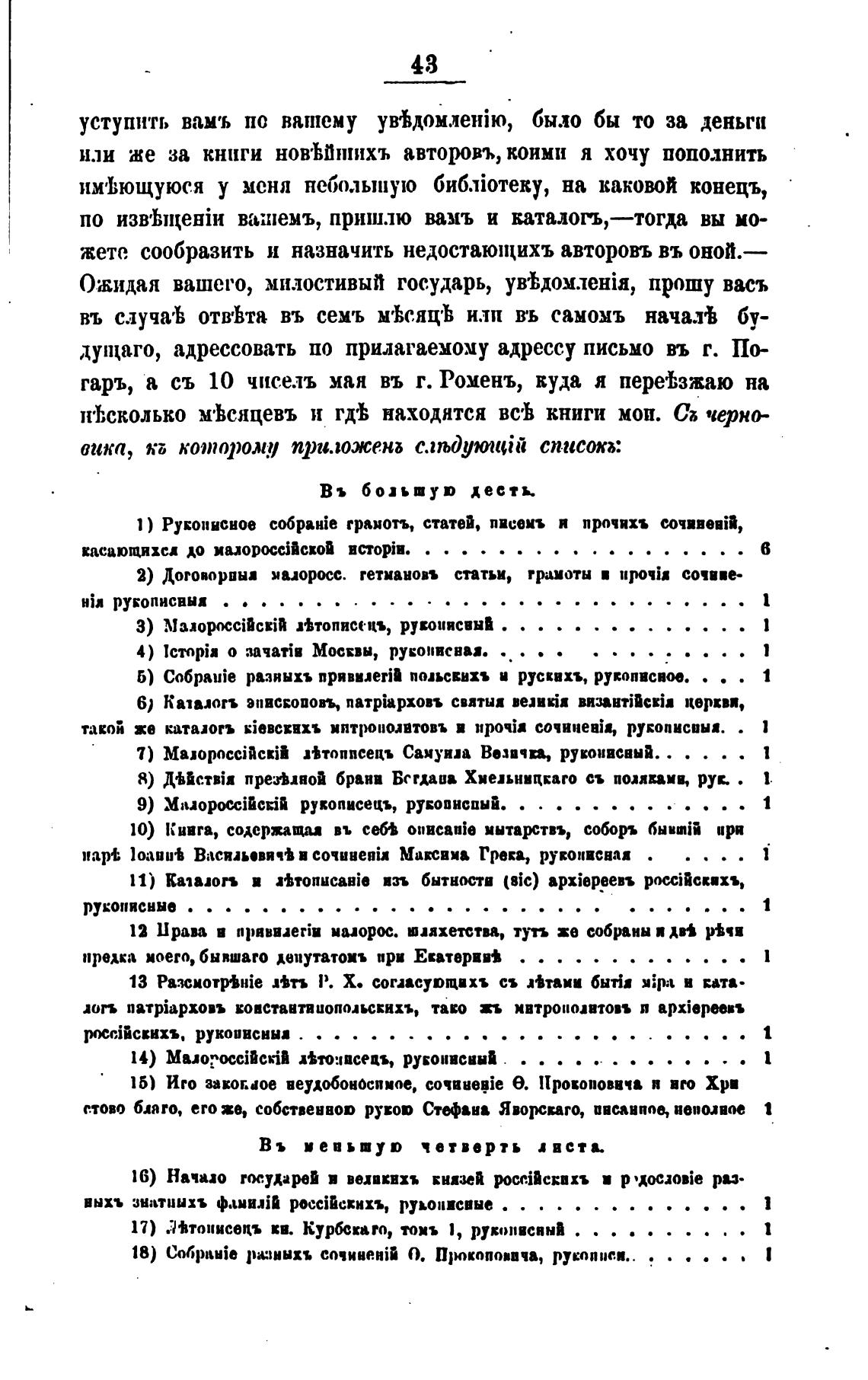 или же за книги новЫн:ихъ авторовъ, коими я хочу пополнить
