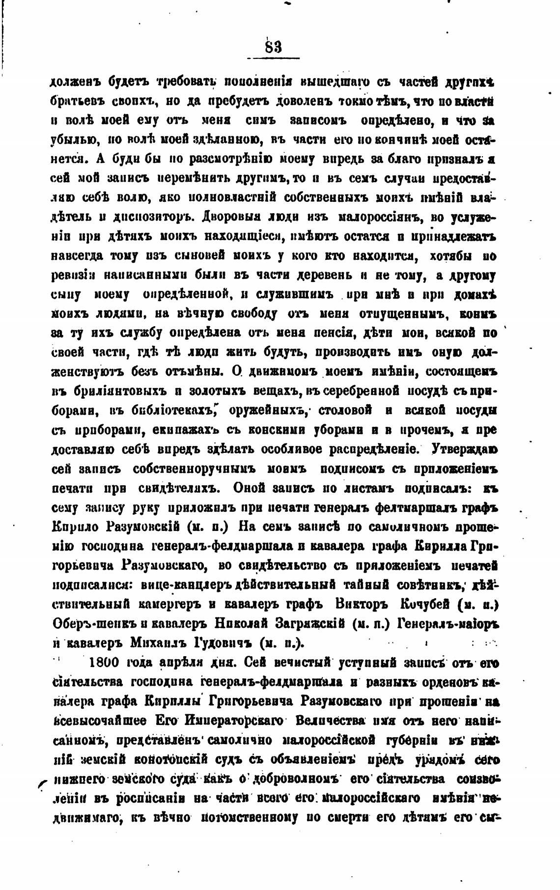 горьеввча Разумовскаго, во свц±тельство съ npnozeuiexb иечатей
