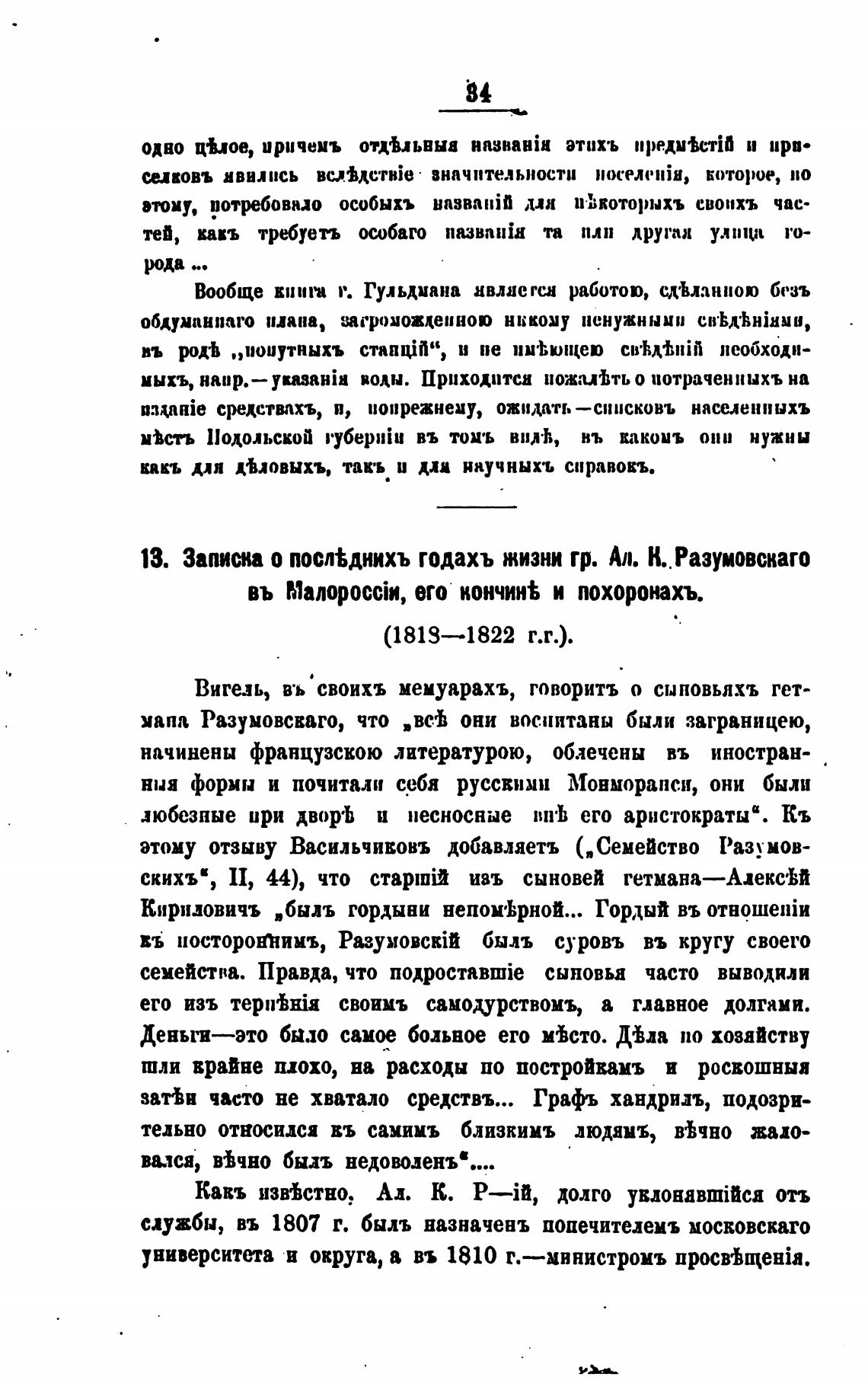 13. Записка о посл%днихъ годахъ жизни гр. К.. Разумовскаго