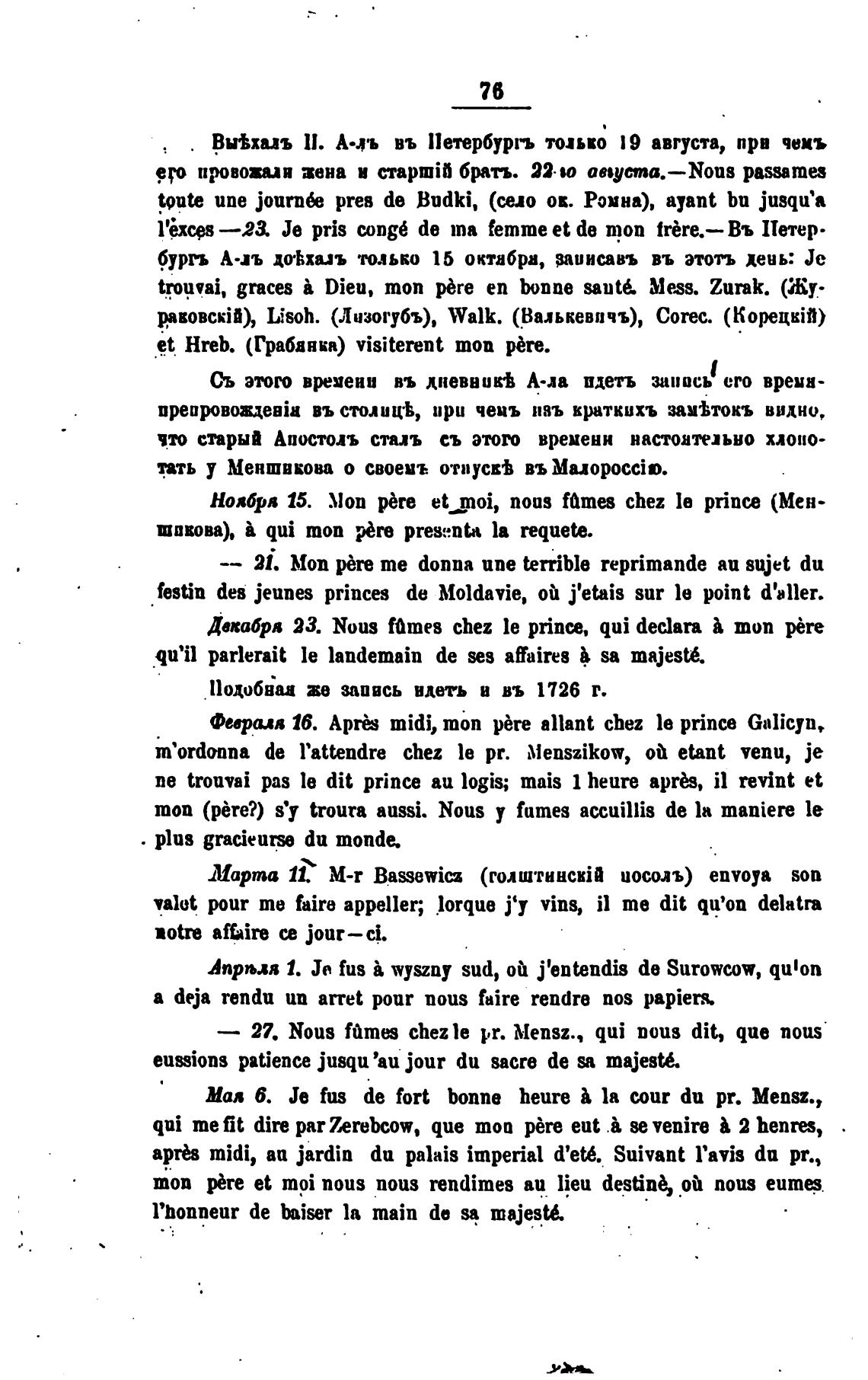 m'ordonna de l'attendre chez le рт. Menszikow, ой etant venu, је
