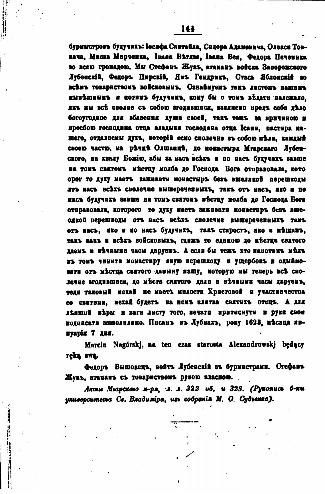 водвватв иволи•во. Пванъ въ Лубнах., року 1628, и•саџ вв-
