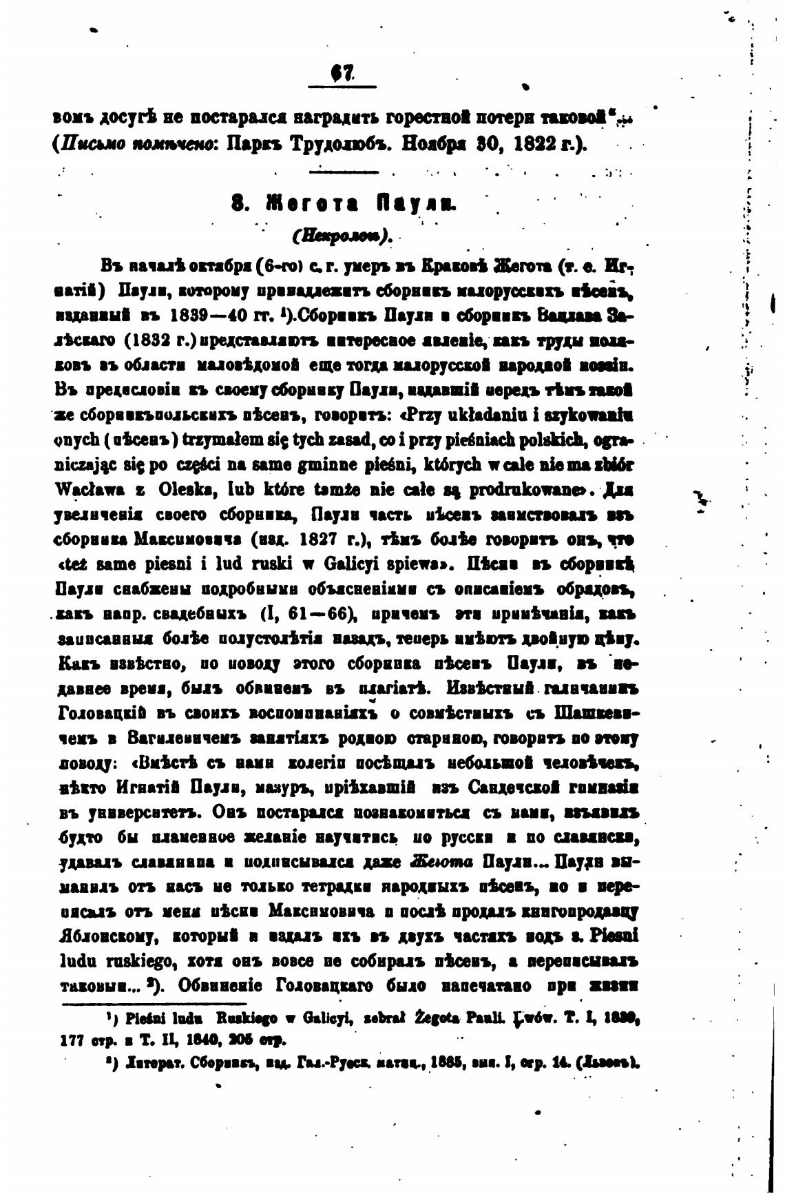 ГоловацкЈП въ свонхъ о ив“ствнхъ сь Шатии—