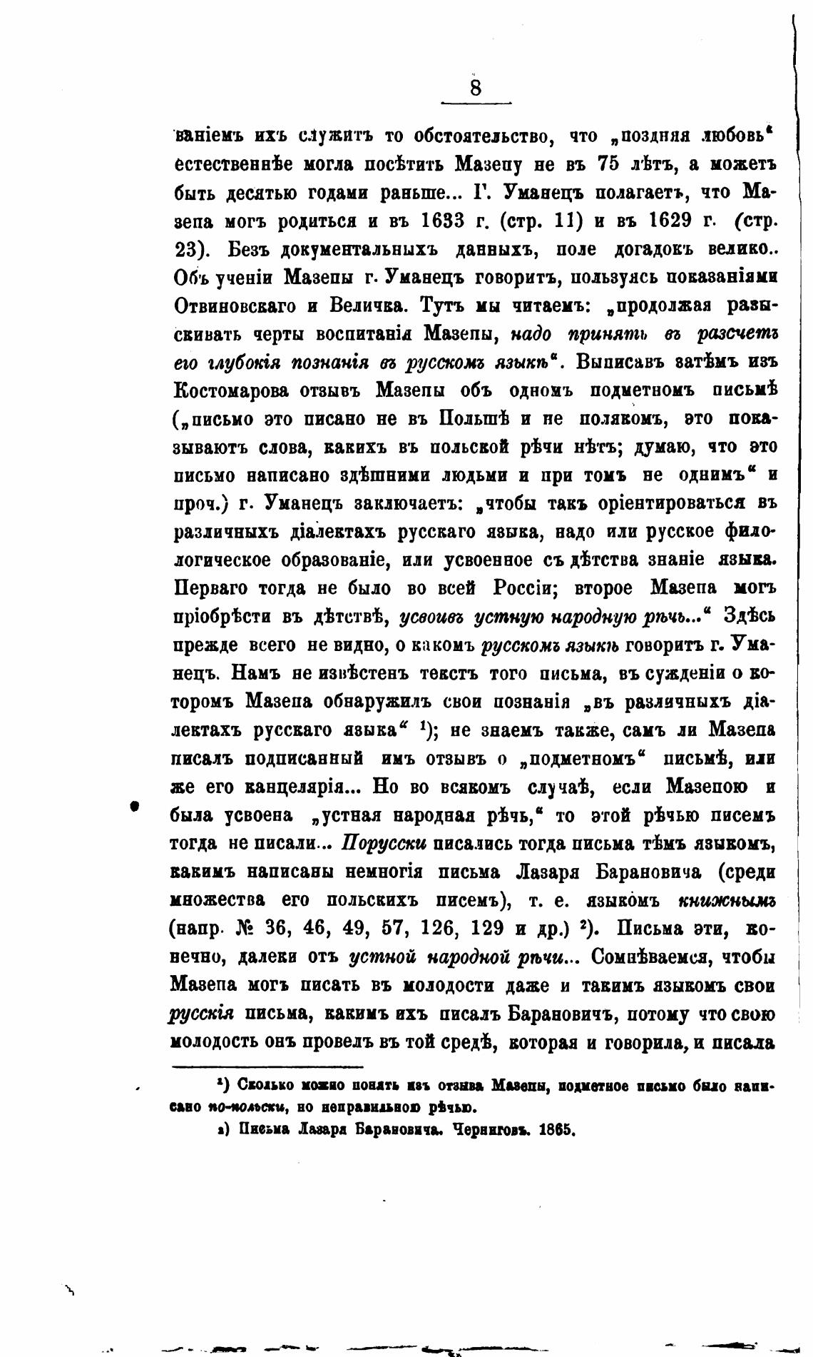 я) Письма Лавра Барановича. Червтовк 1865.