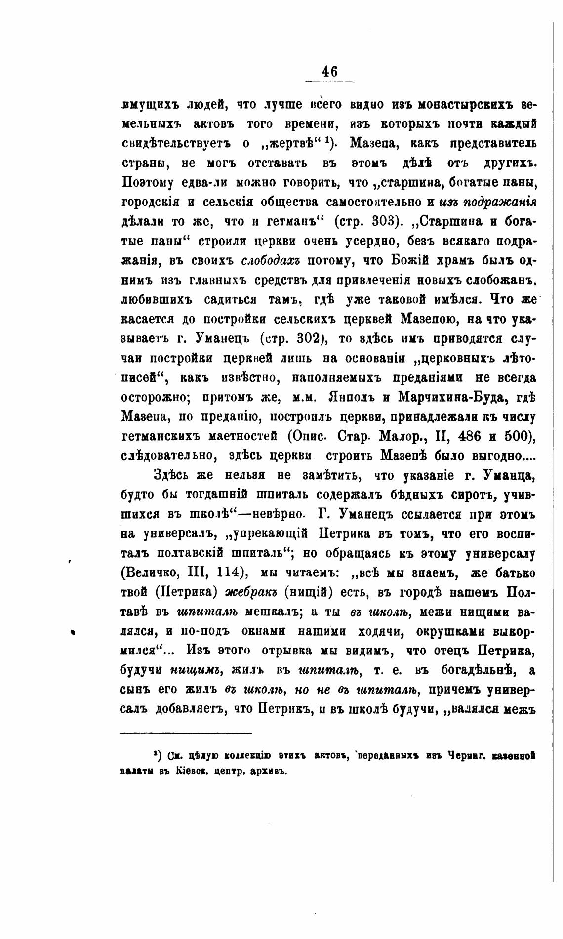 васается до постройки сельскихъ церквей Мазепою, на что ува•