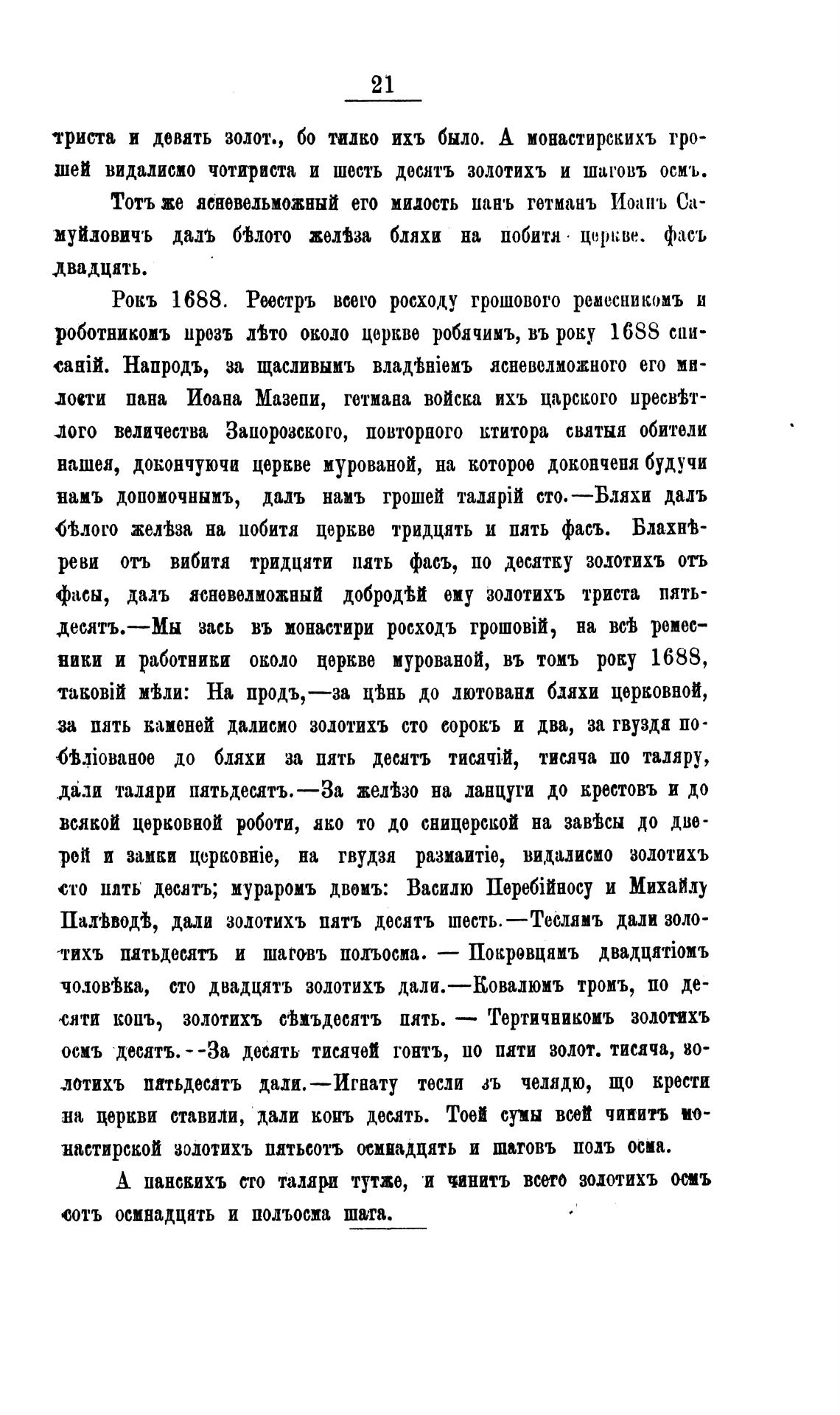 настирской зодотихъ патьеотъ пнадцять и шаговъ подъ осп.