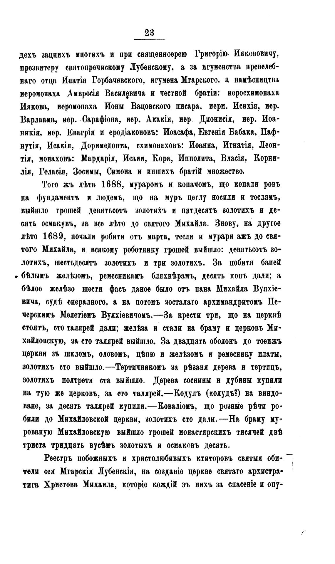 рованую Михайловскую выйшло грошей монастирскихъ тисячей