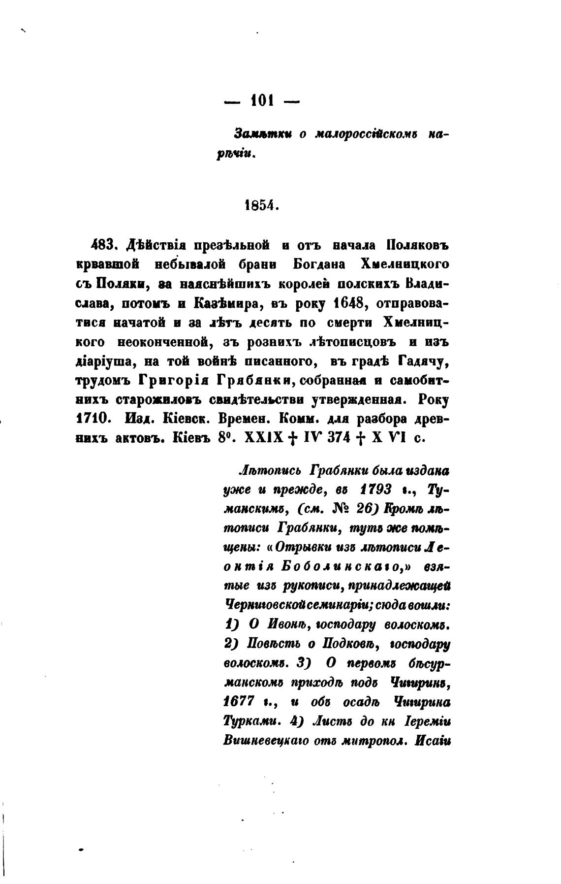 трудомъ Грабянки, собраннаа и самобит—