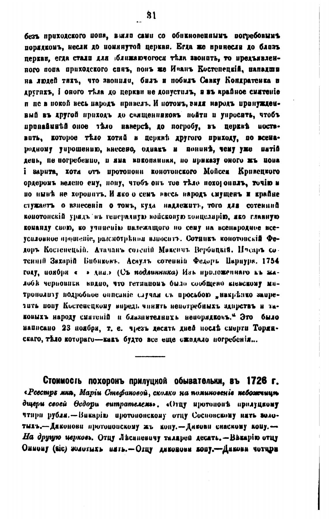 Стоимость похоронъ прилуцноа обывательки, въ 1726 г.