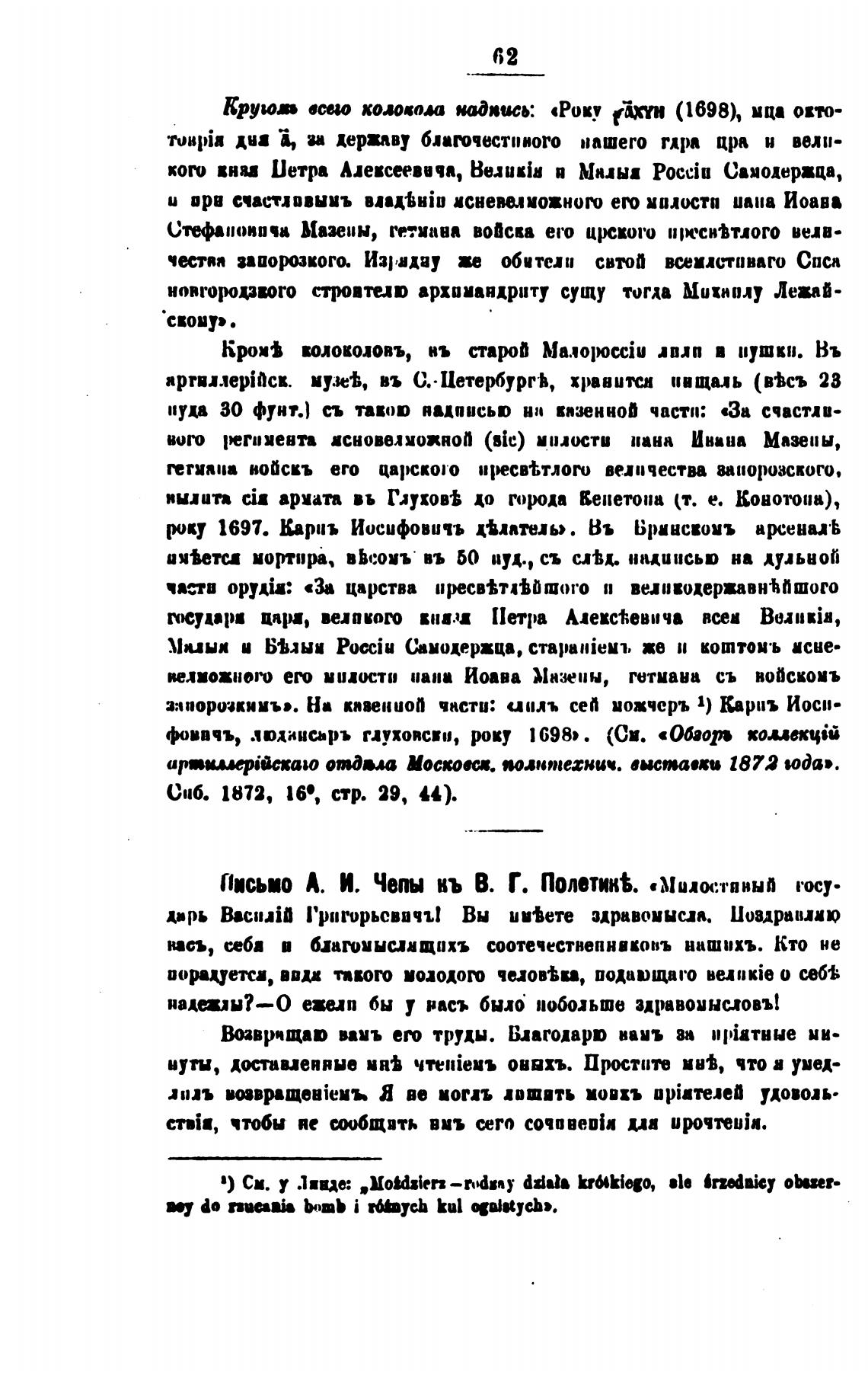 Пись•о А. И. Чепы кь В. Г. Полетик%. «милостпвып гост.