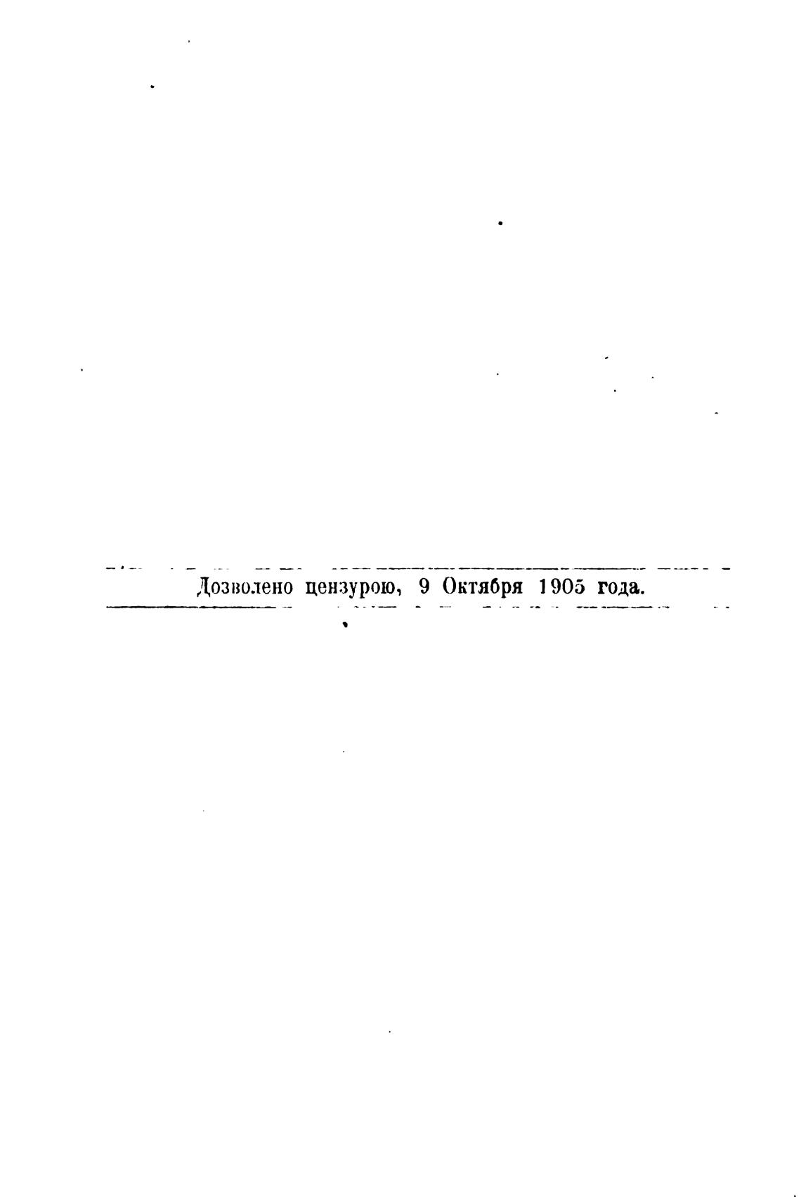 Дозволено цензурою, 9 Октября 1 905 года.