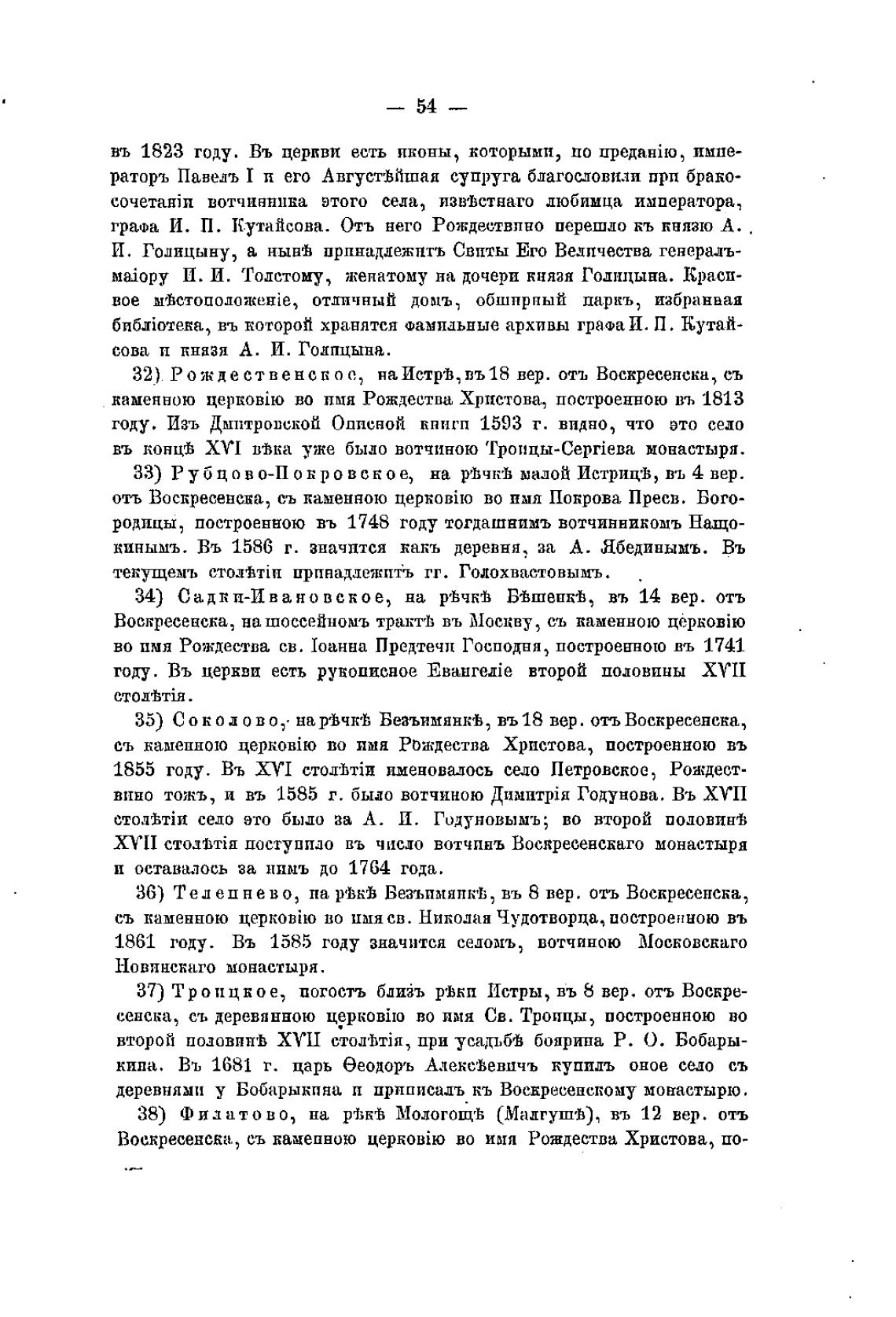37) Троицкое, погостъ бдийъ р•Ькп Истры, въ 8 вер. отъ Воскре-
