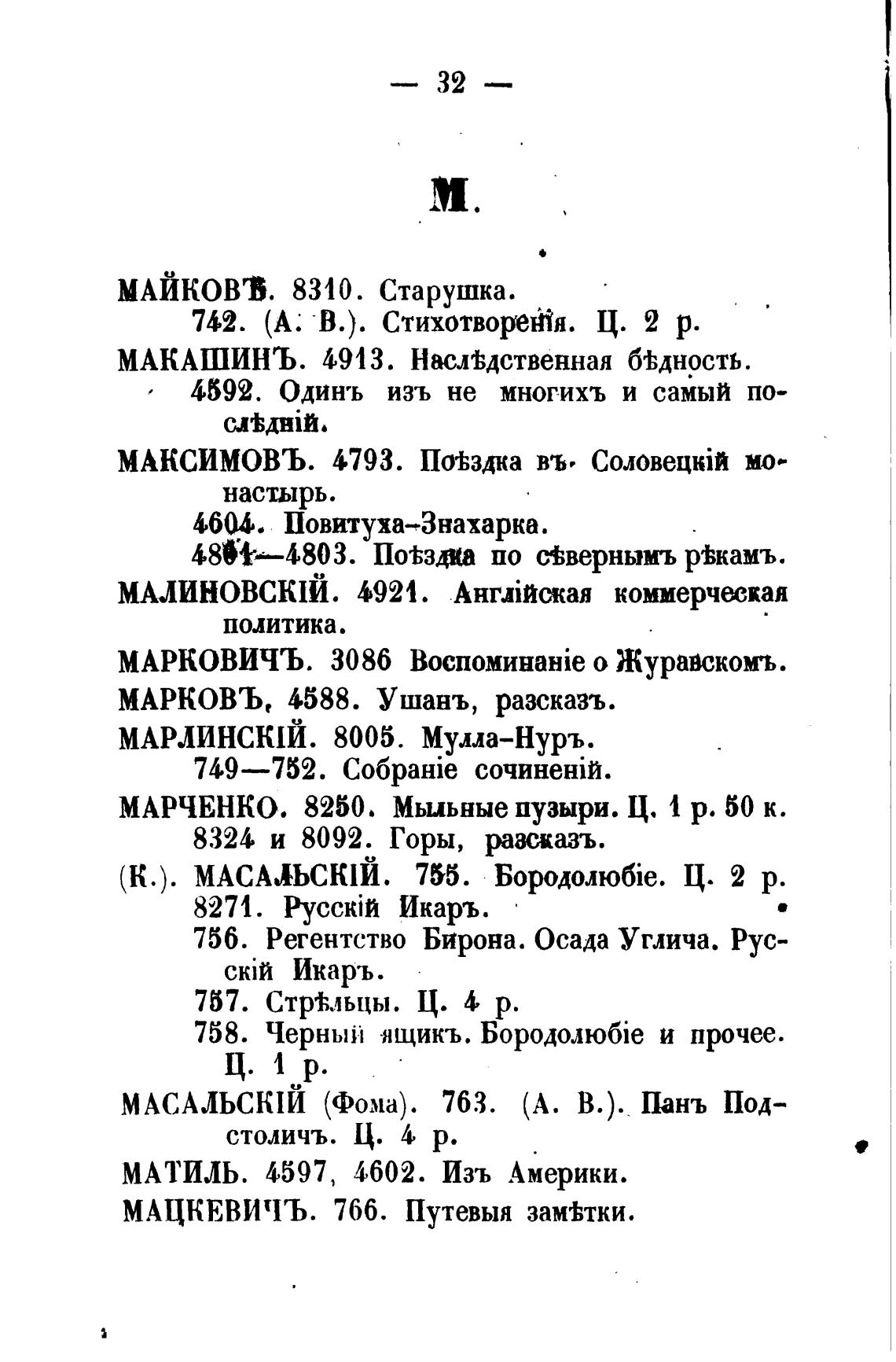 (К.). МАСАЛЬСКIЙ. 755. Ц. 2 р.