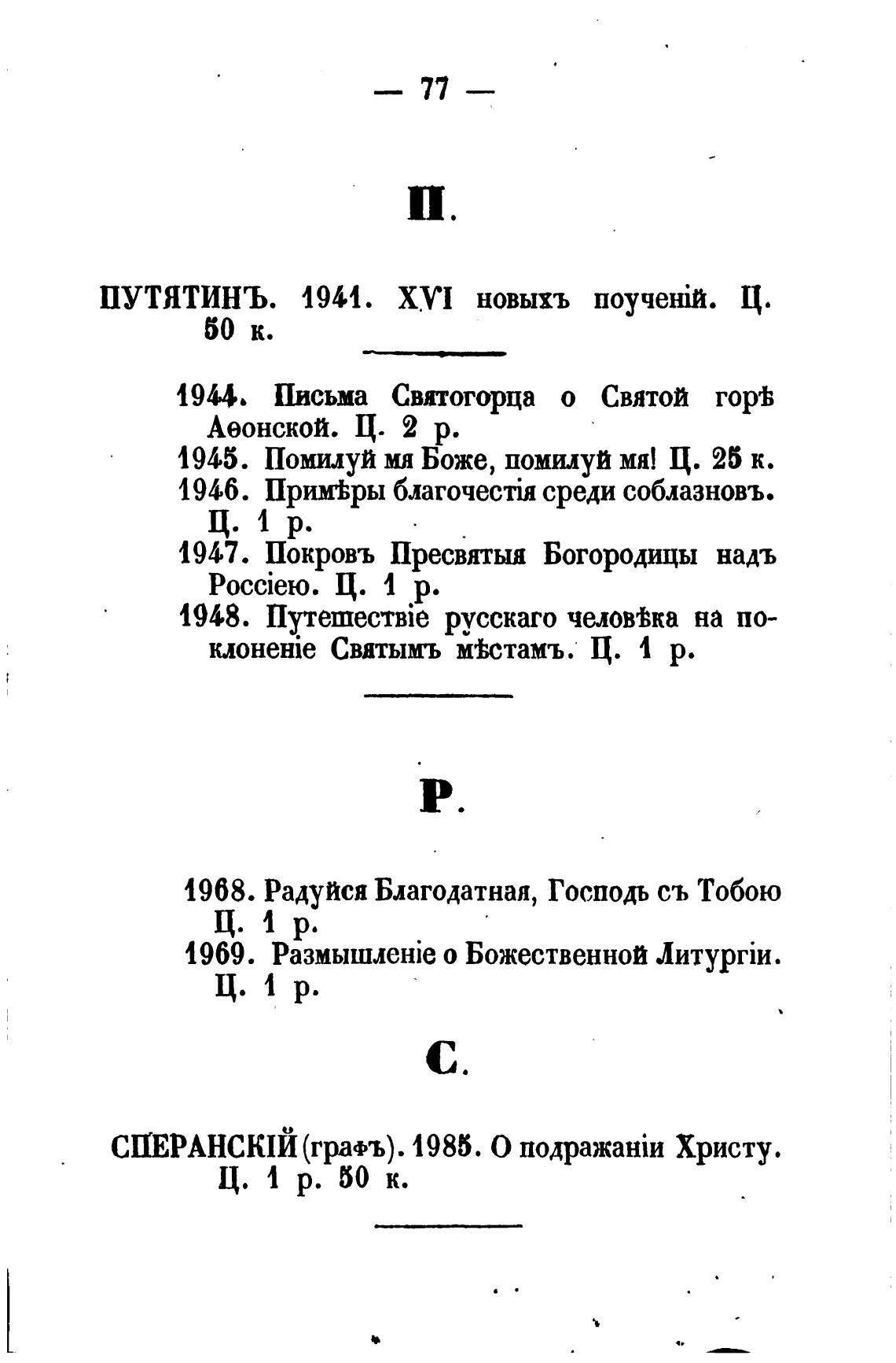 ПУТЯТИНЪ. 4941. XVI новыхъ Ц.