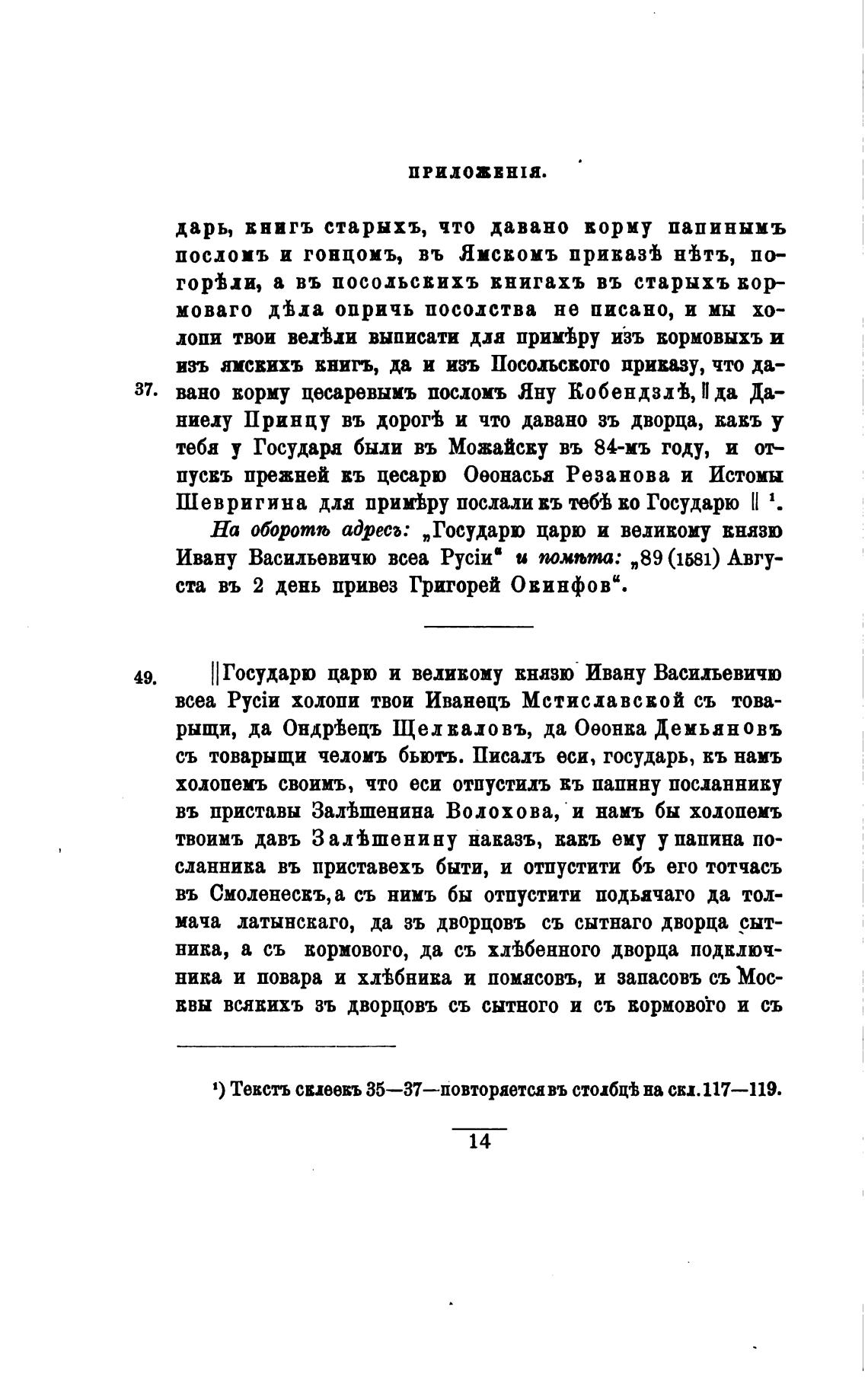 1) Текстъ сиеевъ 35—37—повтораетсавъ столбц± на скл 117—119.