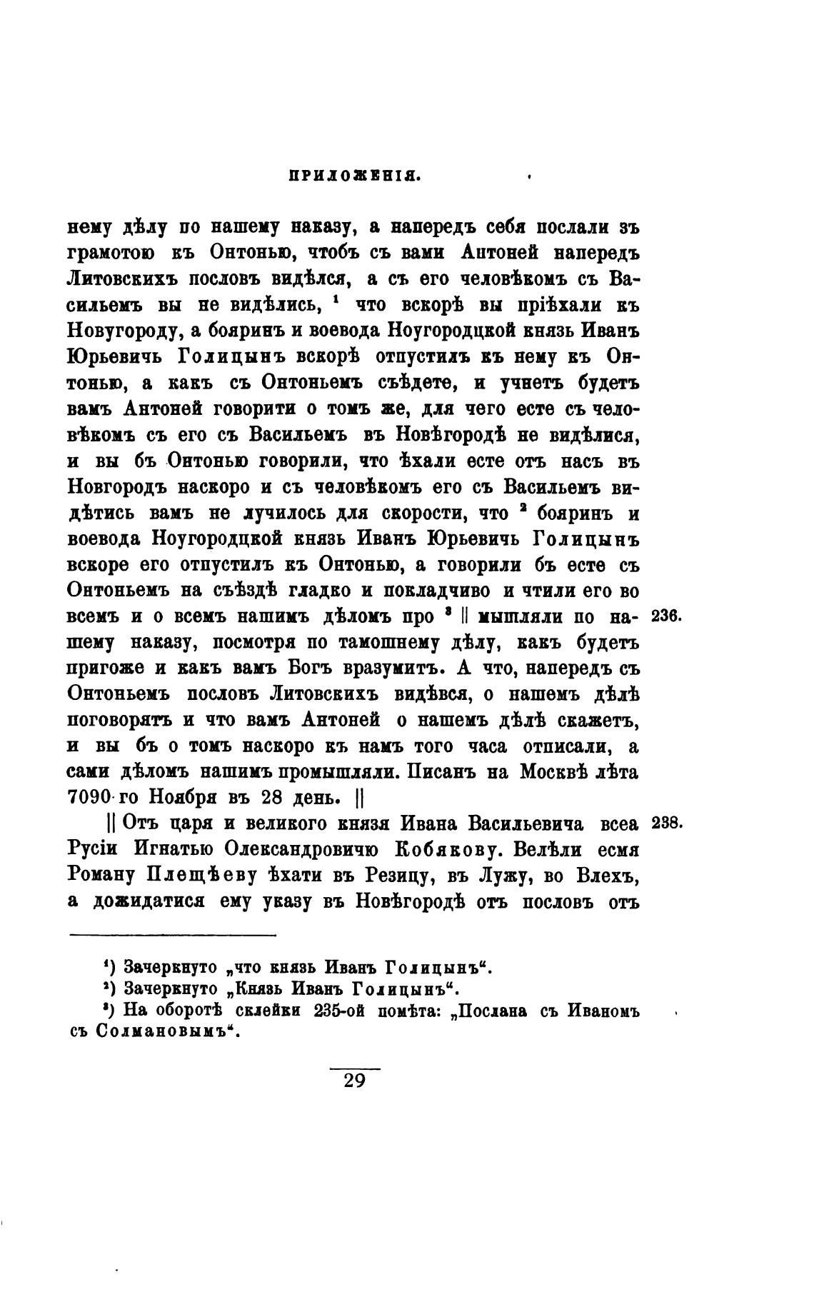 1) Зачервнуто „что внявь Ивань Голицынъи.