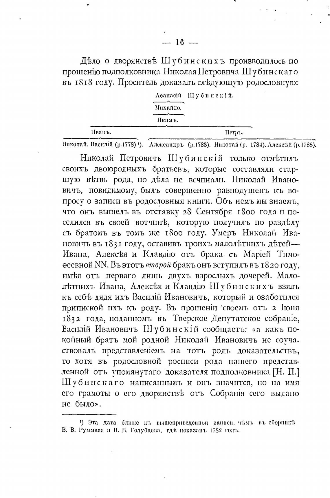 Щ;ло о дворянств-Ь Шубинскпхъ производилось по