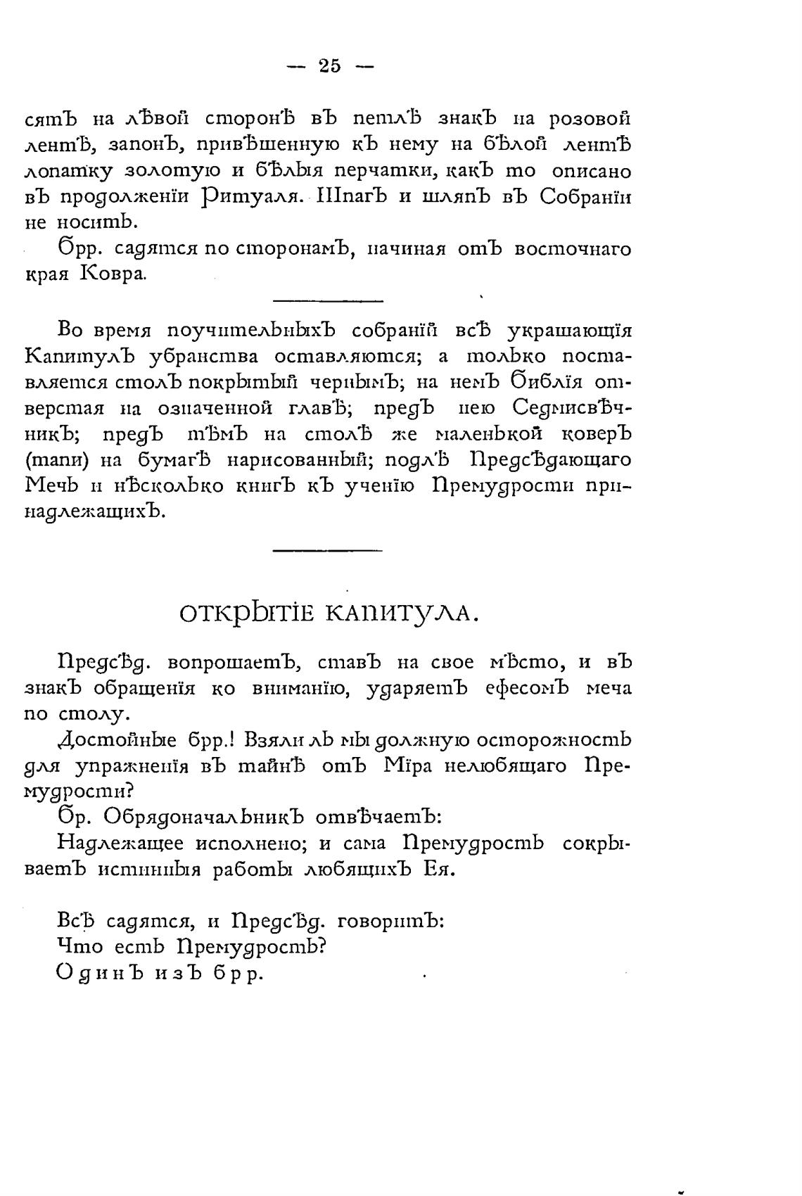 въ продолжен?и Ритуаля. 111пагЪ и шляпЪ въ Собран:и