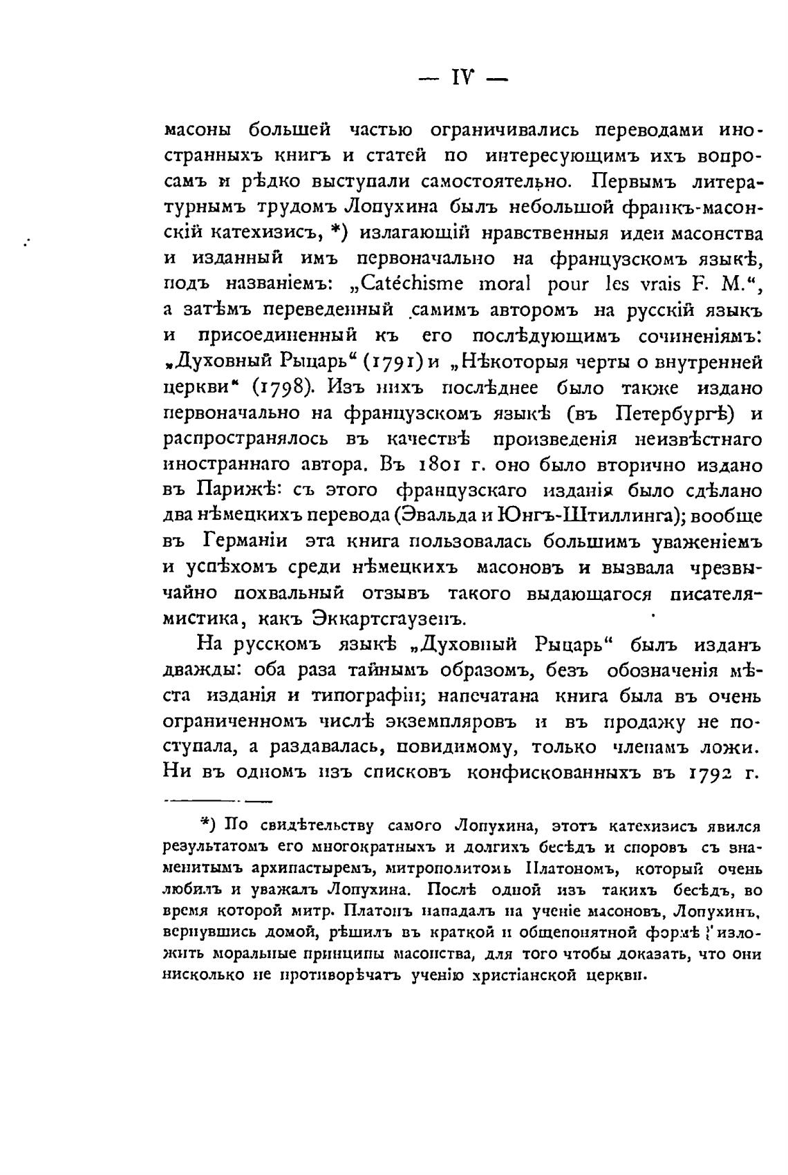 турнымъ трудомъ Лопухина быль небольшой франкъ-масон-