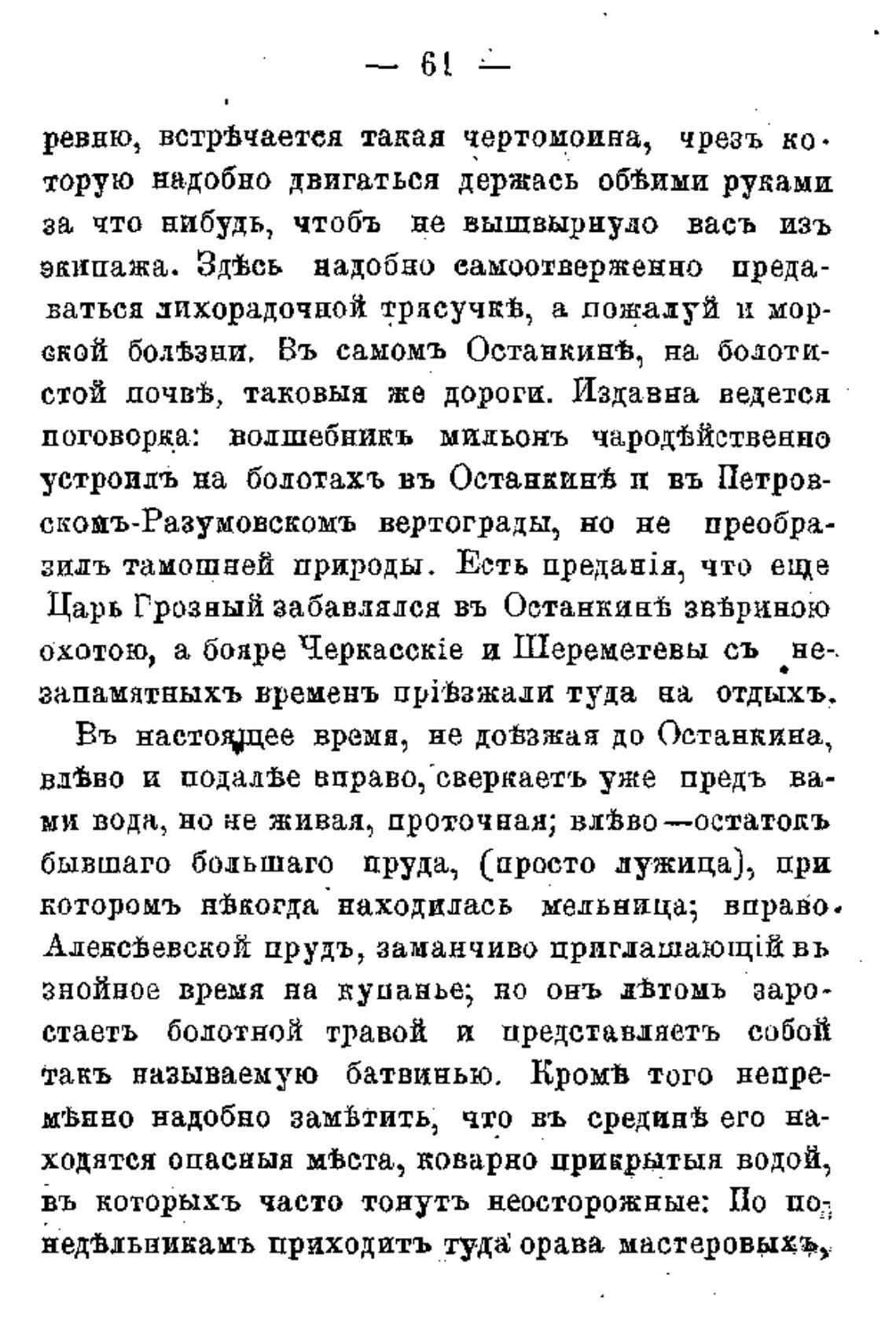 ской болЈ3Е1й, Въ самомъ Останкинв, на болоти-