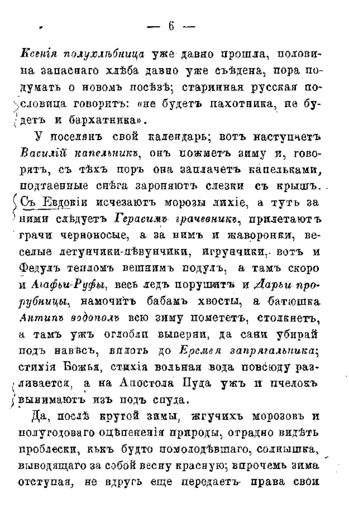 У поселянъ свой лалендарь; вотъ наступаетъ