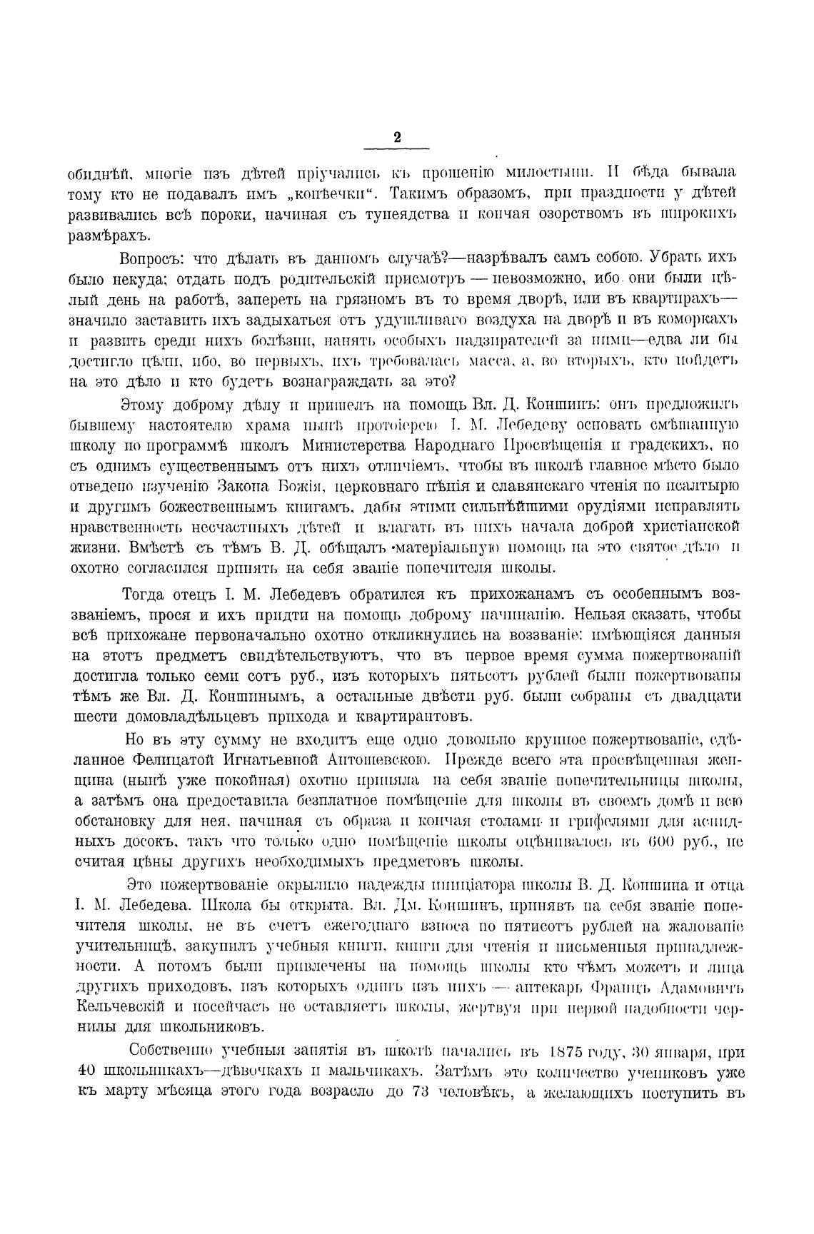 1. М. Лебедева. Школа бы открыта. Вл. Дм. Коншинъ, ирт:нявъ на себя званје попе-