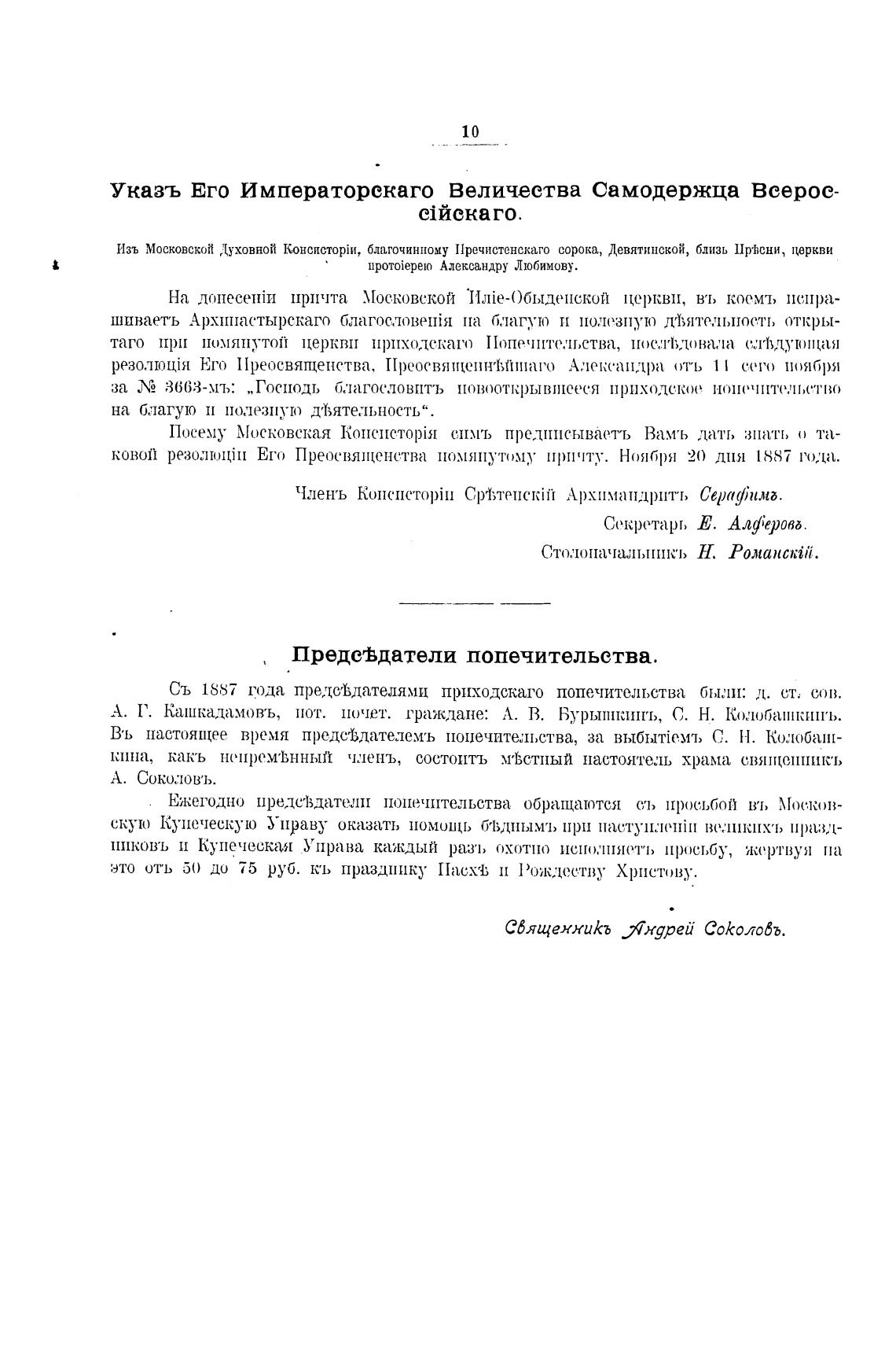 Съ 1887 года предстдателями пр1[.ходскаго попечительства были: л. ст, сов.